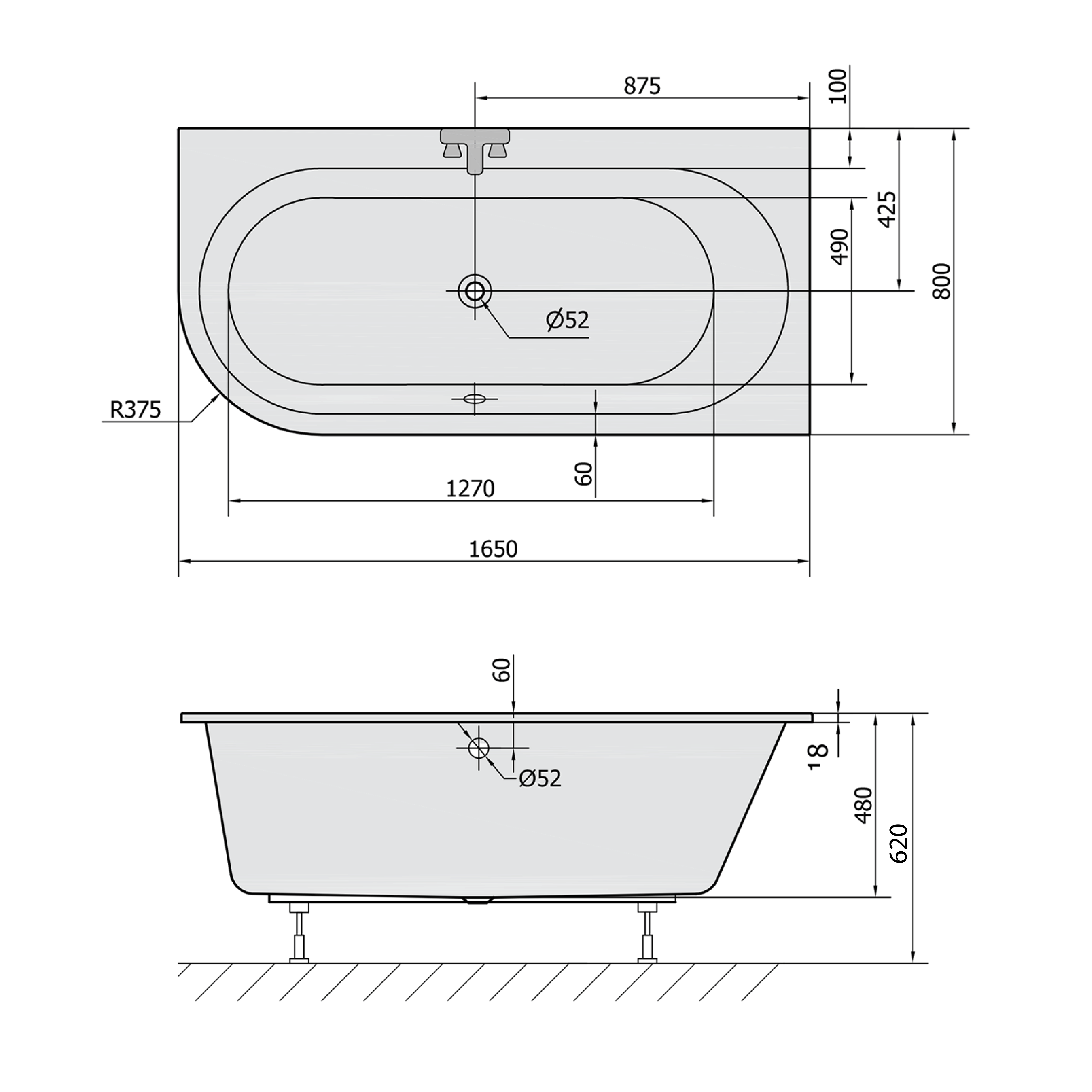 Nosná konstrukce pro asymetrickou vanu 165x80cm FR16580