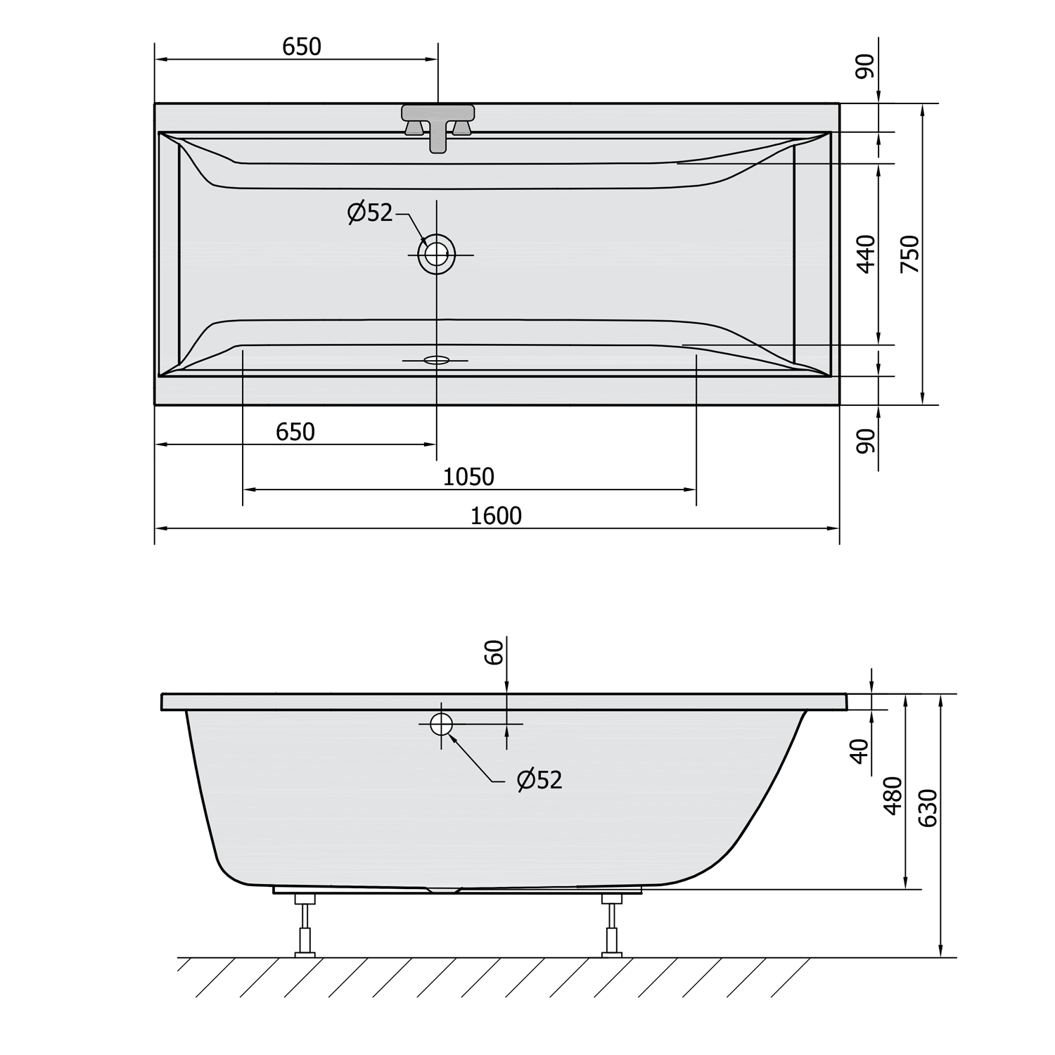 Nosná konstrukce pro obdélníkovou vanu 160x75cm FR16075