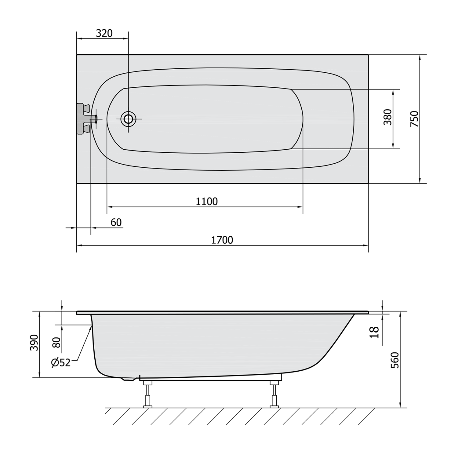 Podstavec k akrylátové vaně Polysan, 51,5cm, pár PO60-60