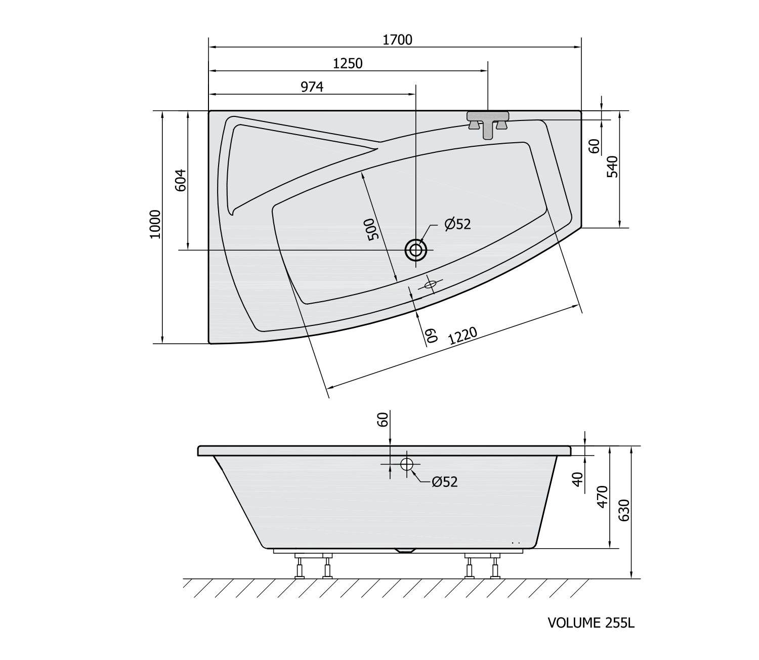 Nosná konstrukce pro asymetrickou vanu 170x100cm FR170100