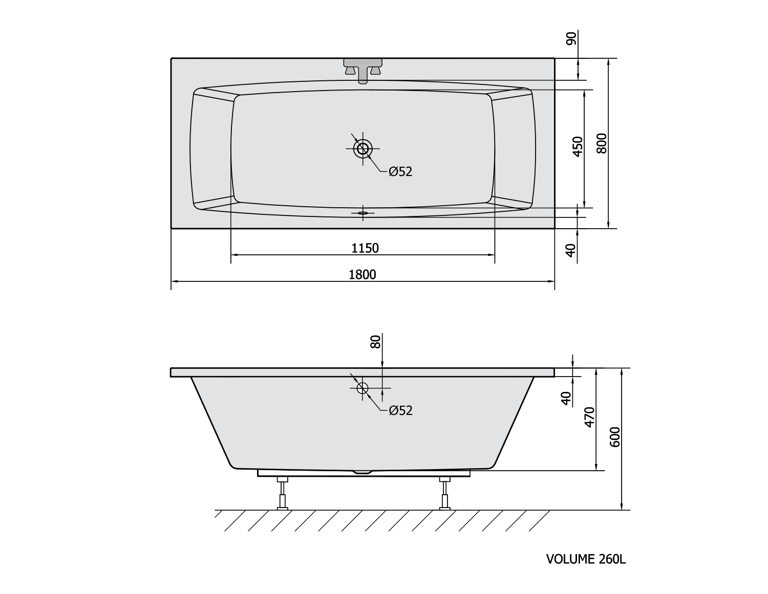 Nosná konstrukce pro obdélníkovou vanu 180x80cm FR18081
