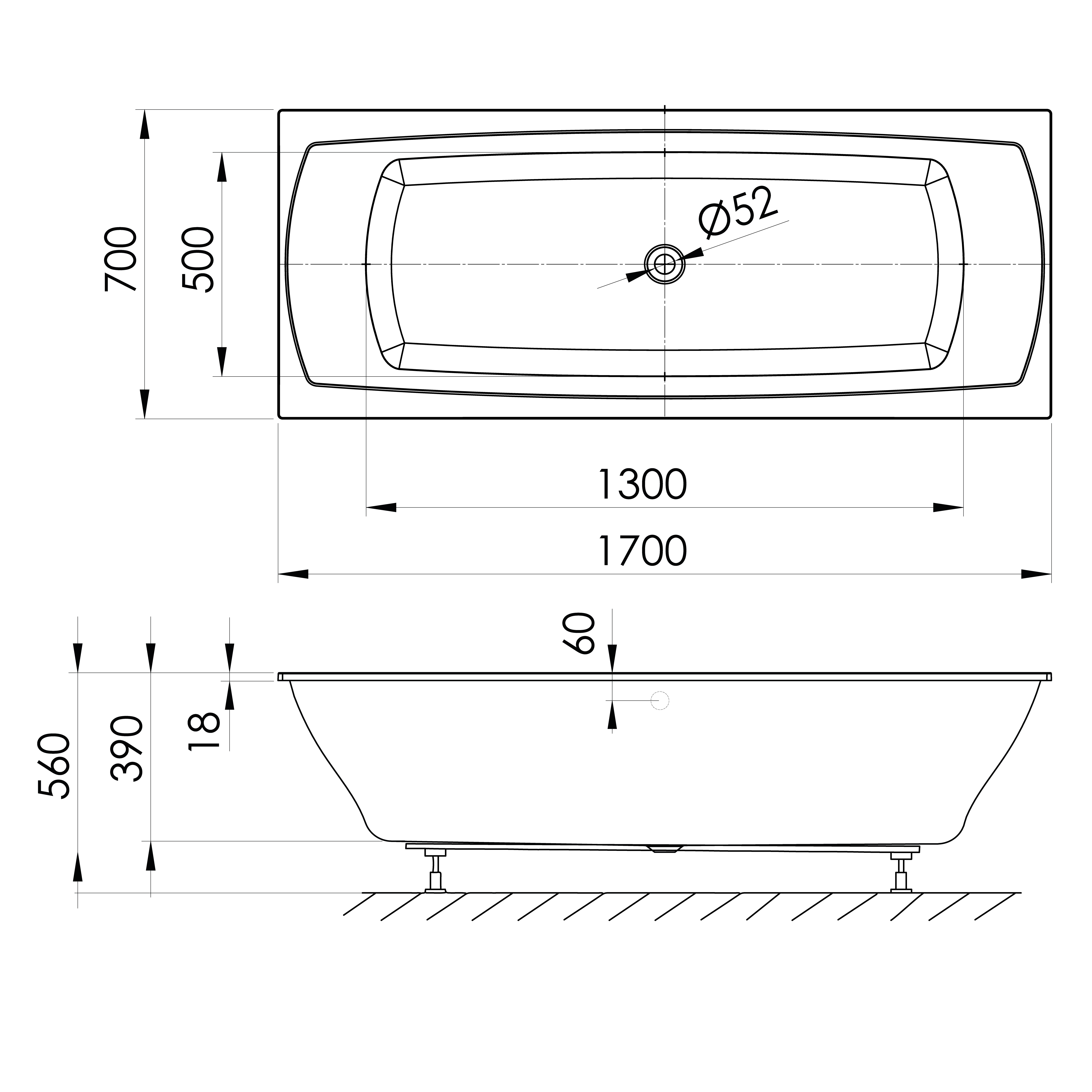 • Vana s pohodlně tvarovanými stěnami pro opření zad na obou stranách a odtokem umístěným uprostřed.