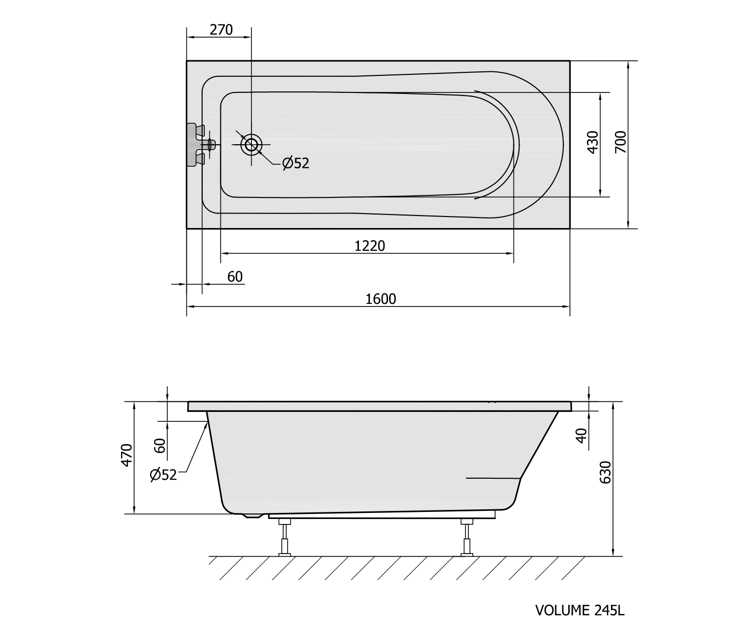 Nosná konstrukce pro obdélníkovou vanu 160x70cm FR16071