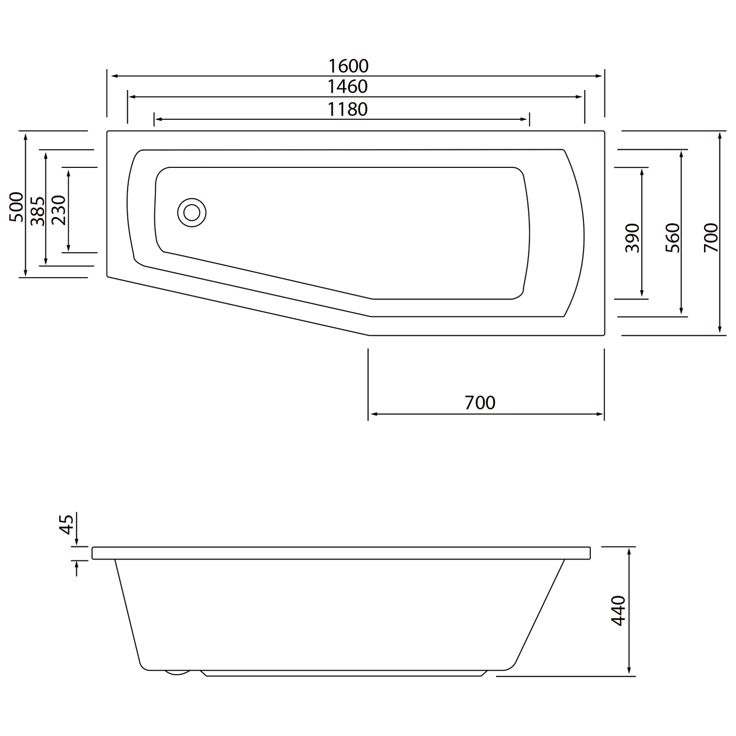Asymetrická rohová vana, která se dobře uplatní v malých koupelnách s nedostatkem prostoru. Při instalaci s vanovou zástěnou navíc umožňuje tvar vany pohodlné sprchování v rozšířené části.