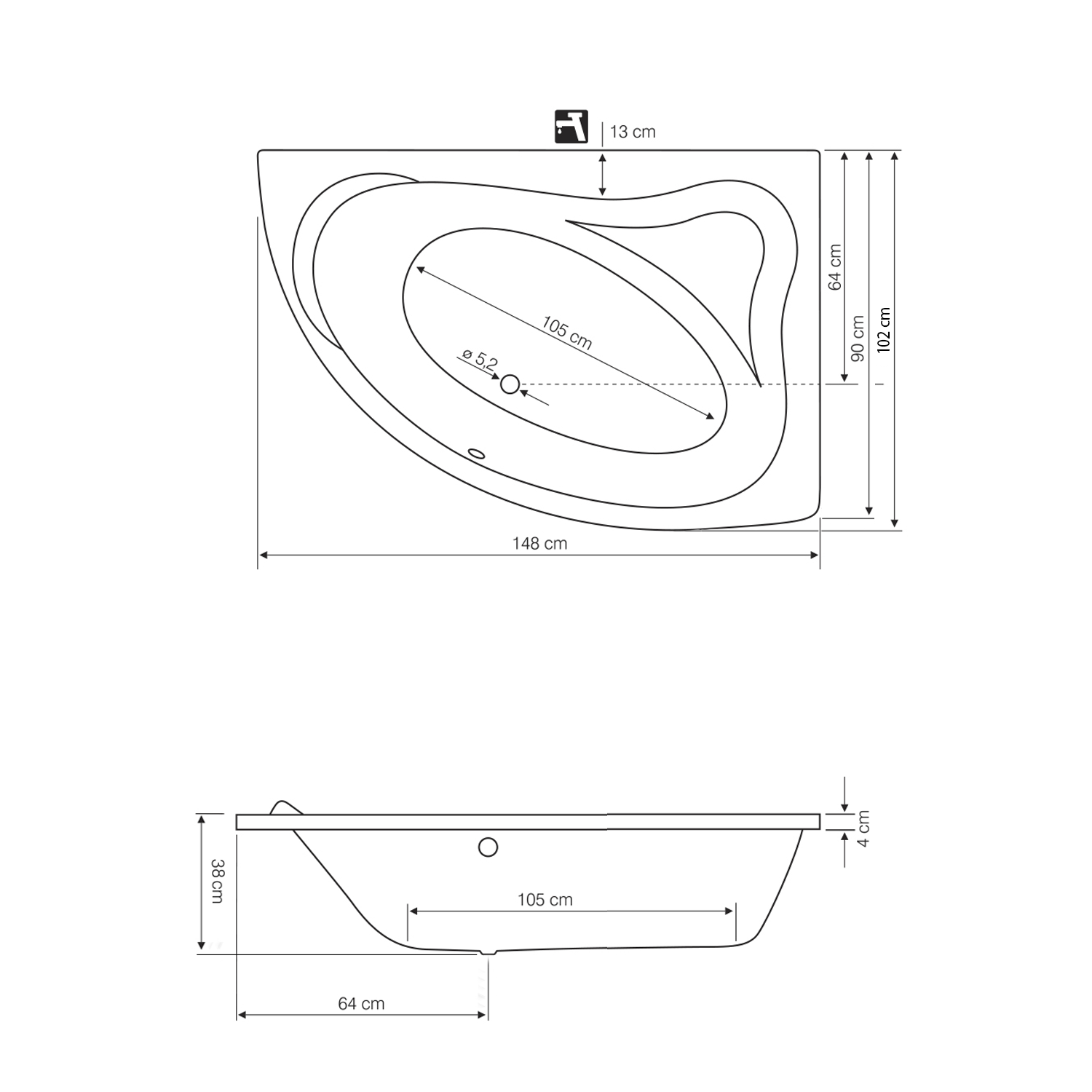 CIDLINA 150 vana 150x105x45cm, pravá, bílá G3619