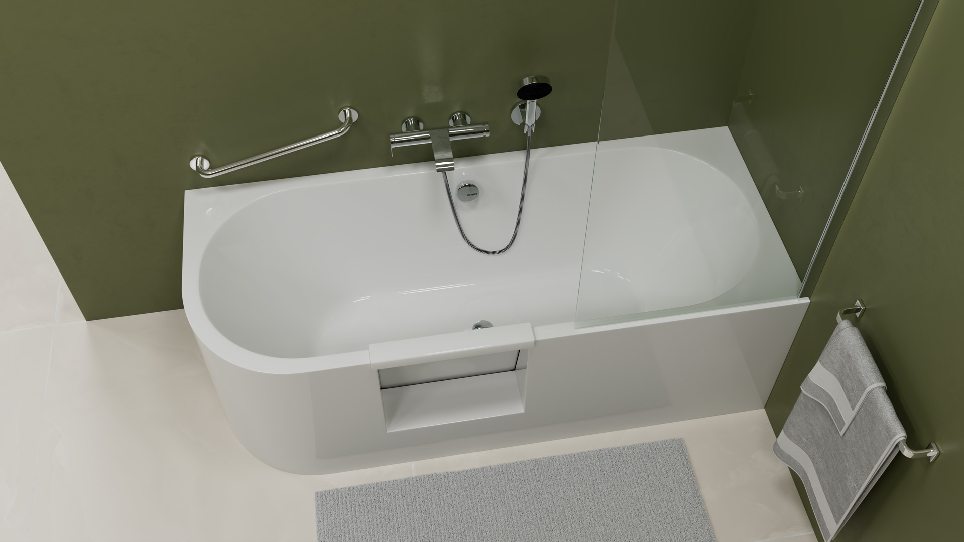 Elegantní vana poskytuje uživatelský komfort a bezbariérový vstup díky odnímatelným magnetickým dvířkům.