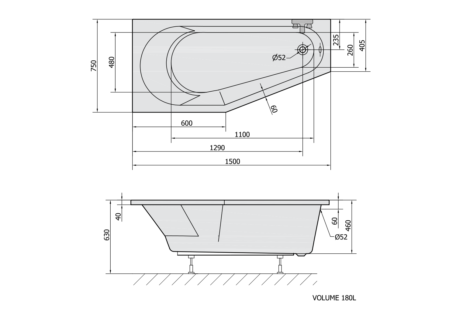 Nosná konstrukce pro asymetrickou vanu 150x75cm, L/R FR15076