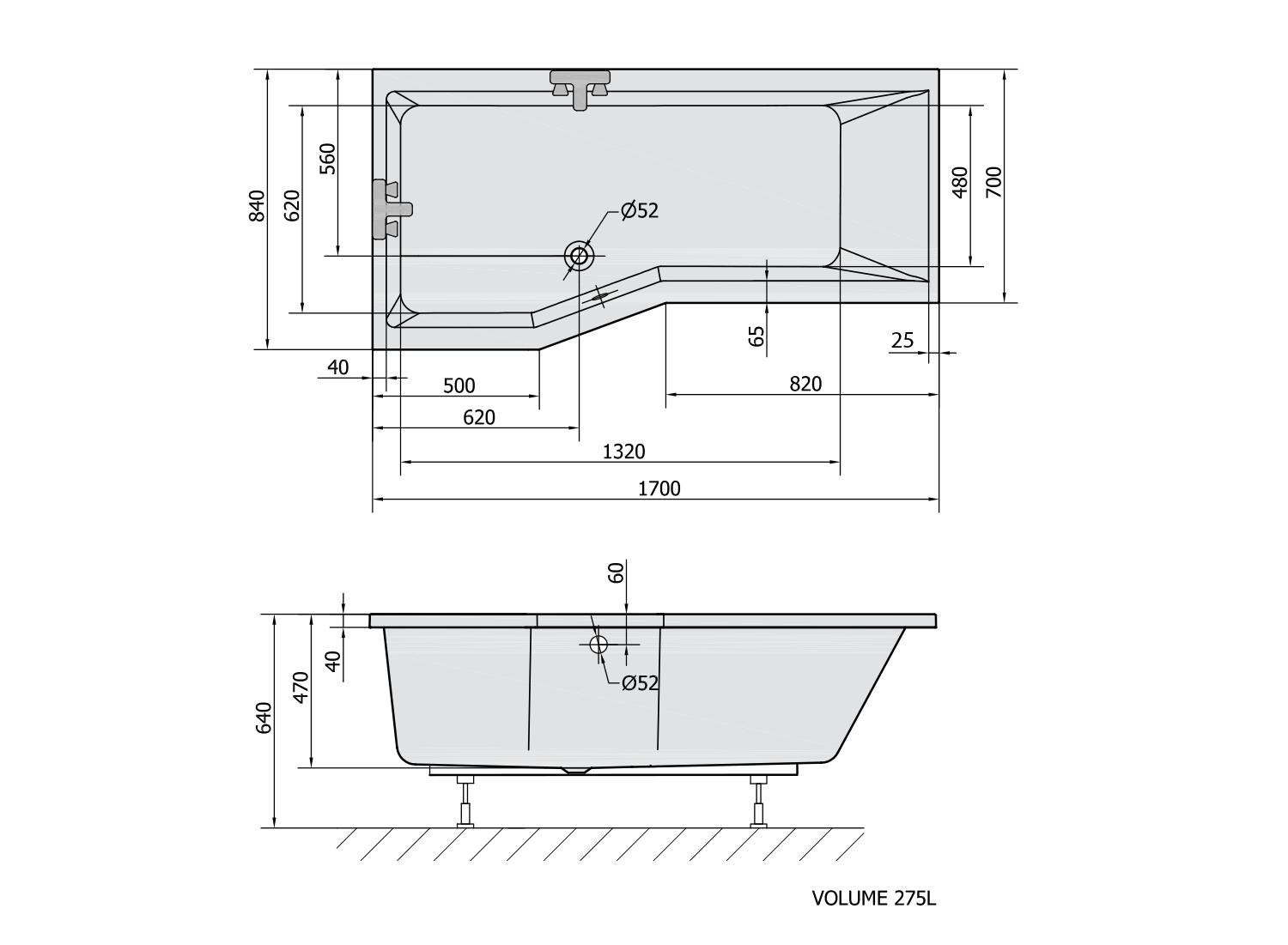 EVIA L asymetrická vana 170x100x47cm, bílá 21611