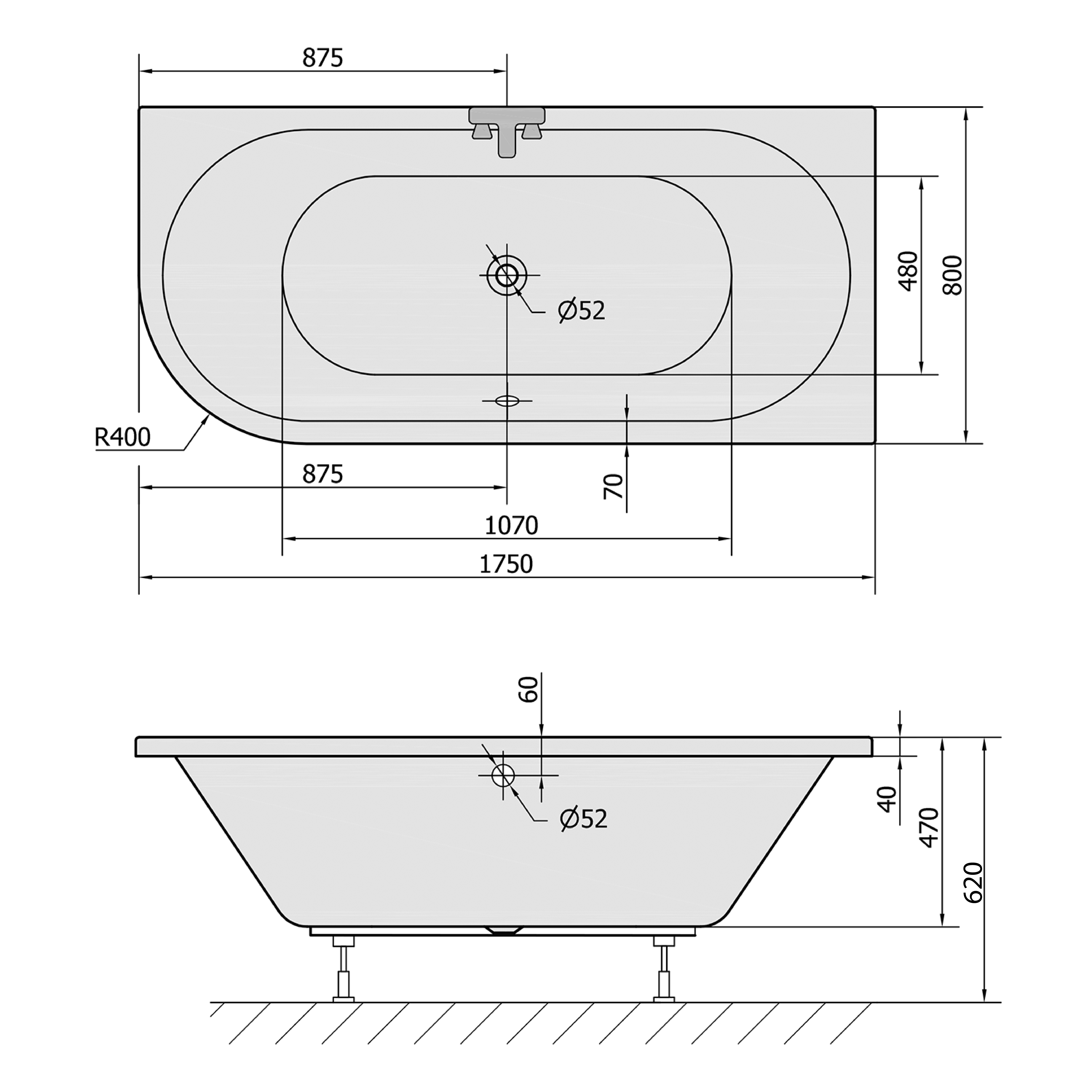 Nosná konstrukce pro asymetrickou vanu 175x80cm, L/R FR17580