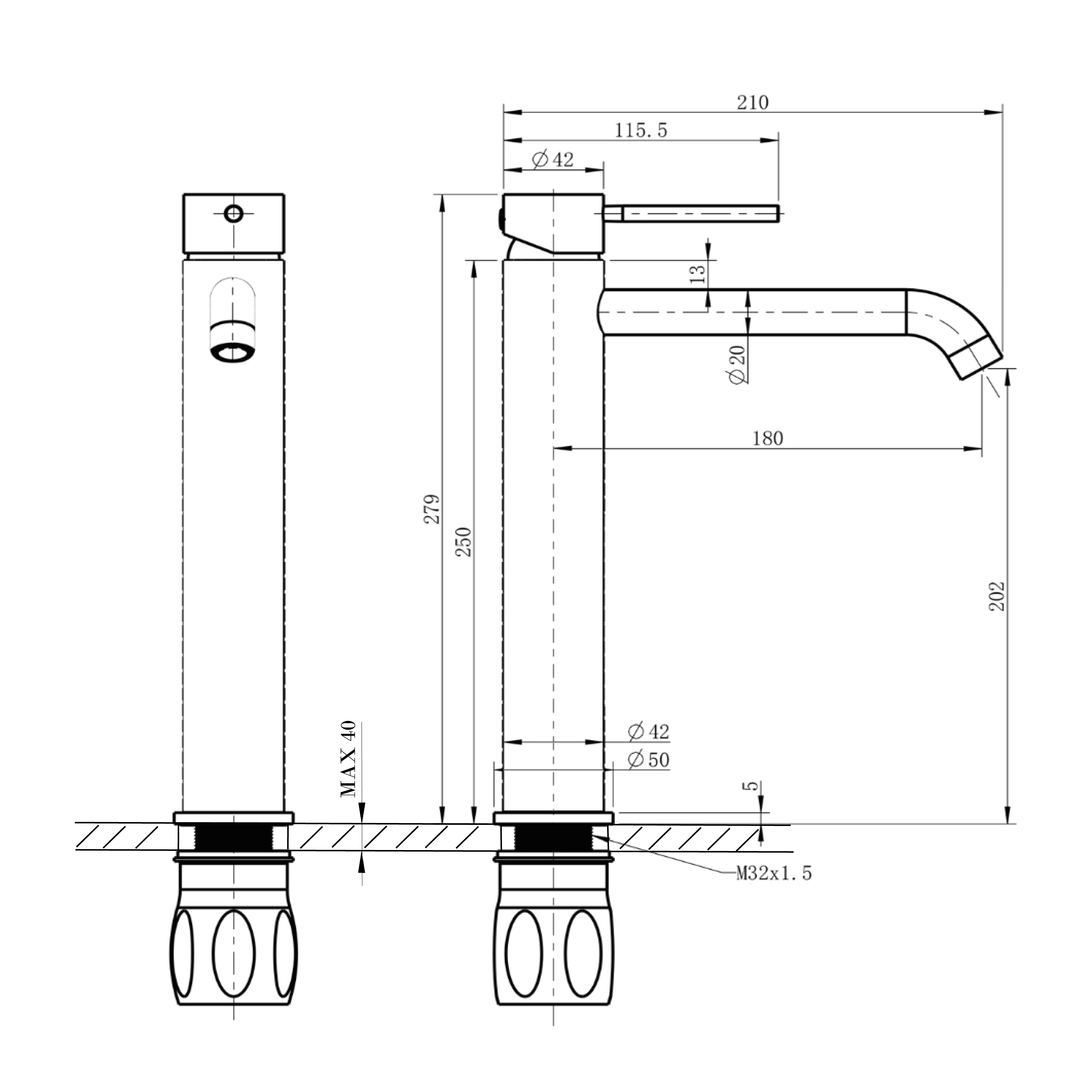 Prodloužené uchycení baterie, M32*1,5x80mm US335