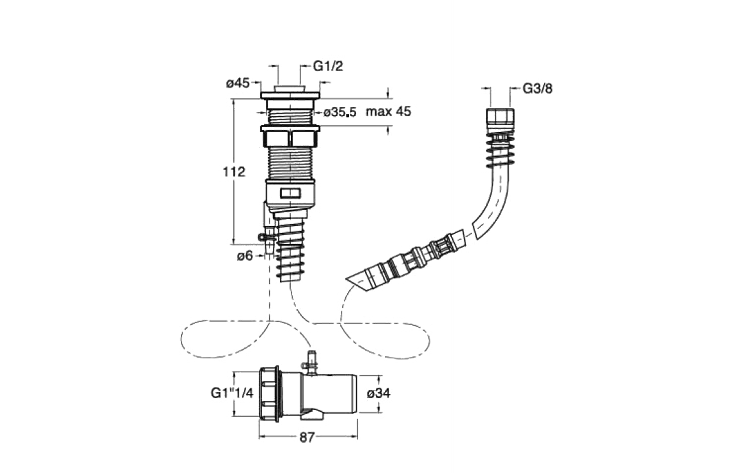 FOLLOW ME sprchová průchodka s odvodněním na okraj vany vč. hadice a drenážního kusu, hranatá, chrom PD468