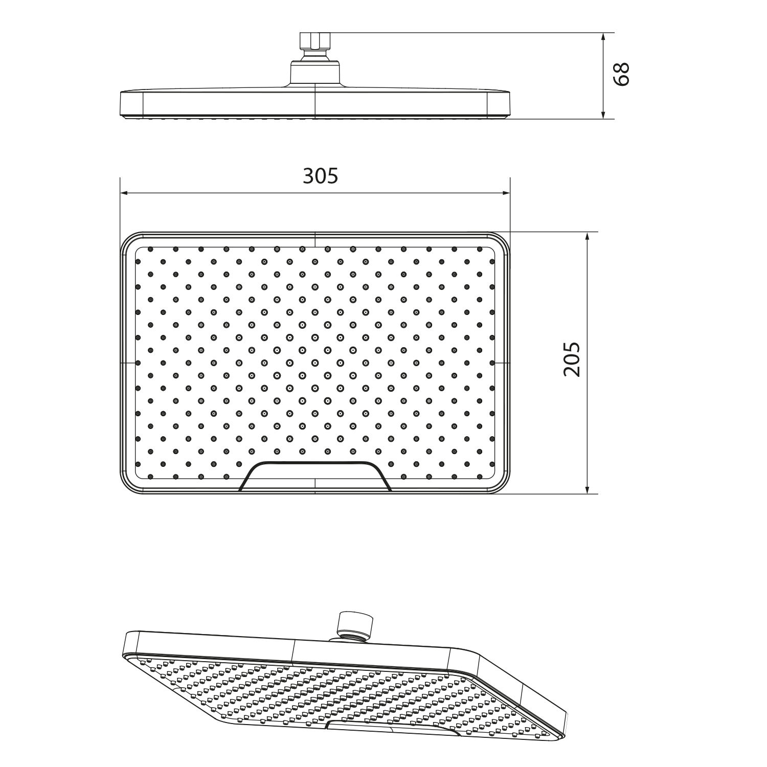 Sprchové stropní ramínko, hranaté, 200mm, černá mat 1205-07B