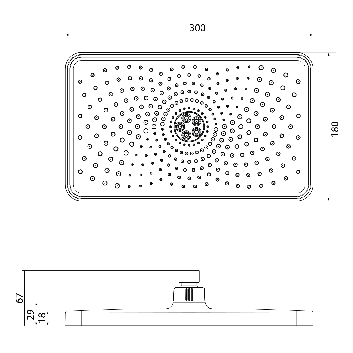 Sprchové stropní ramínko, hranaté, 200mm, chrom