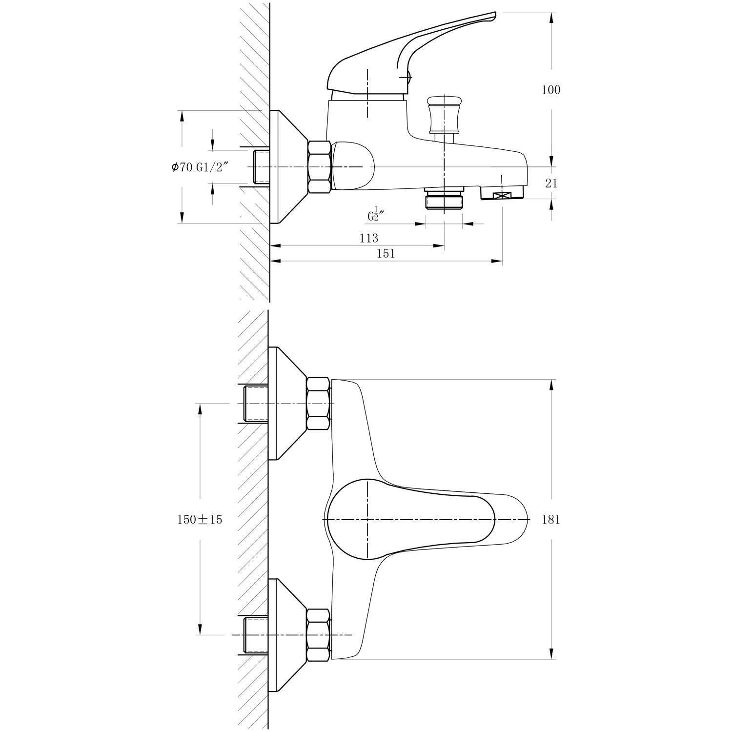 SIEGER nástěnná vanová baterie, chrom 914.010.1