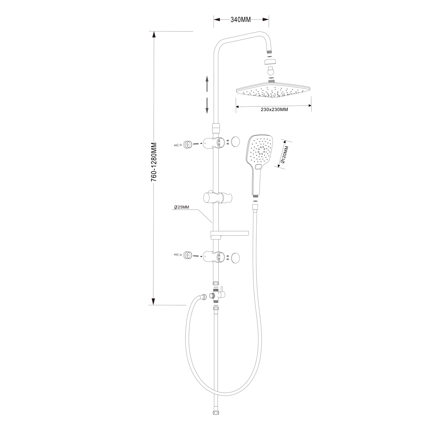 Nastavitelná výška sloupu; AntiCalc; Nastavitelná rozteč uchycení