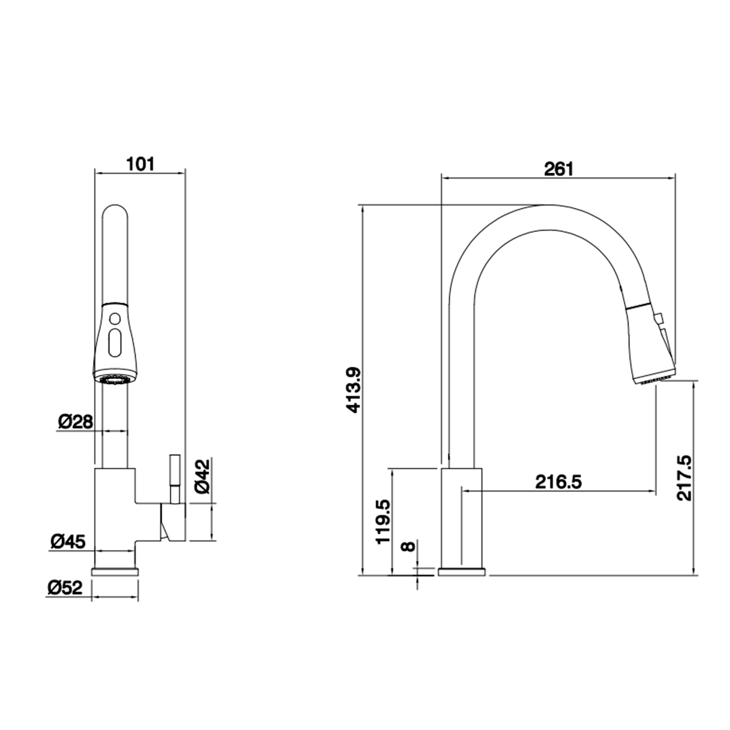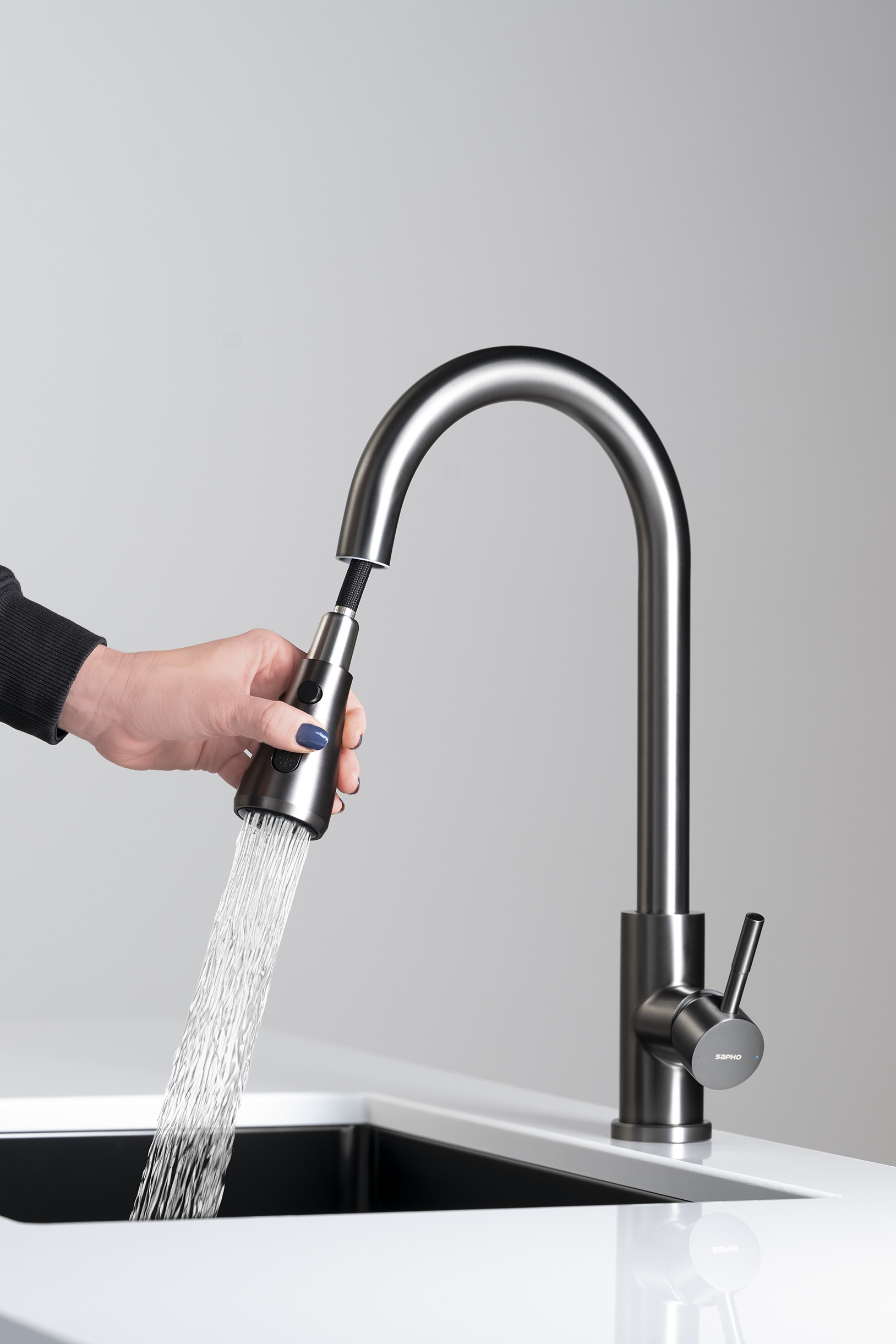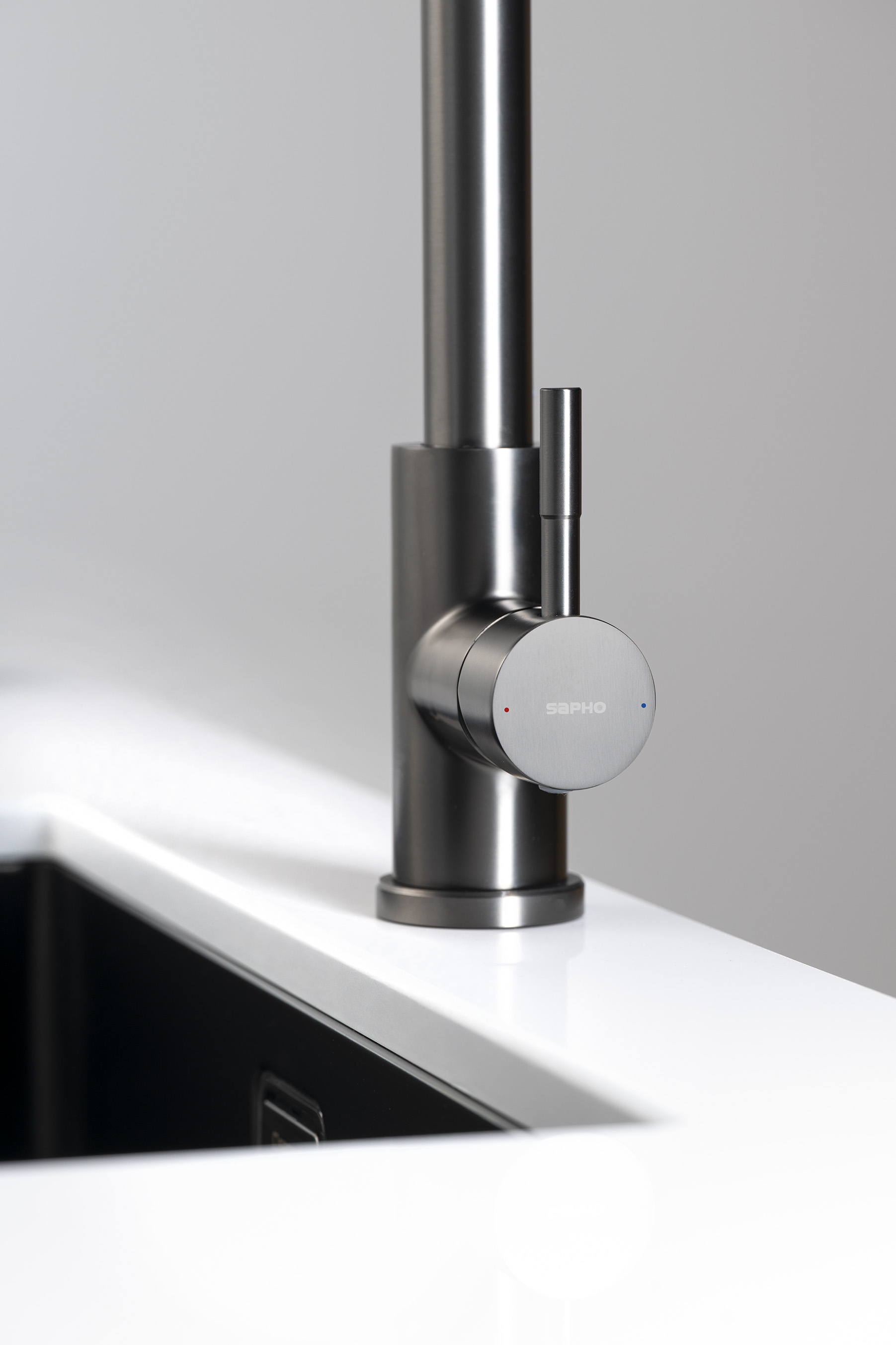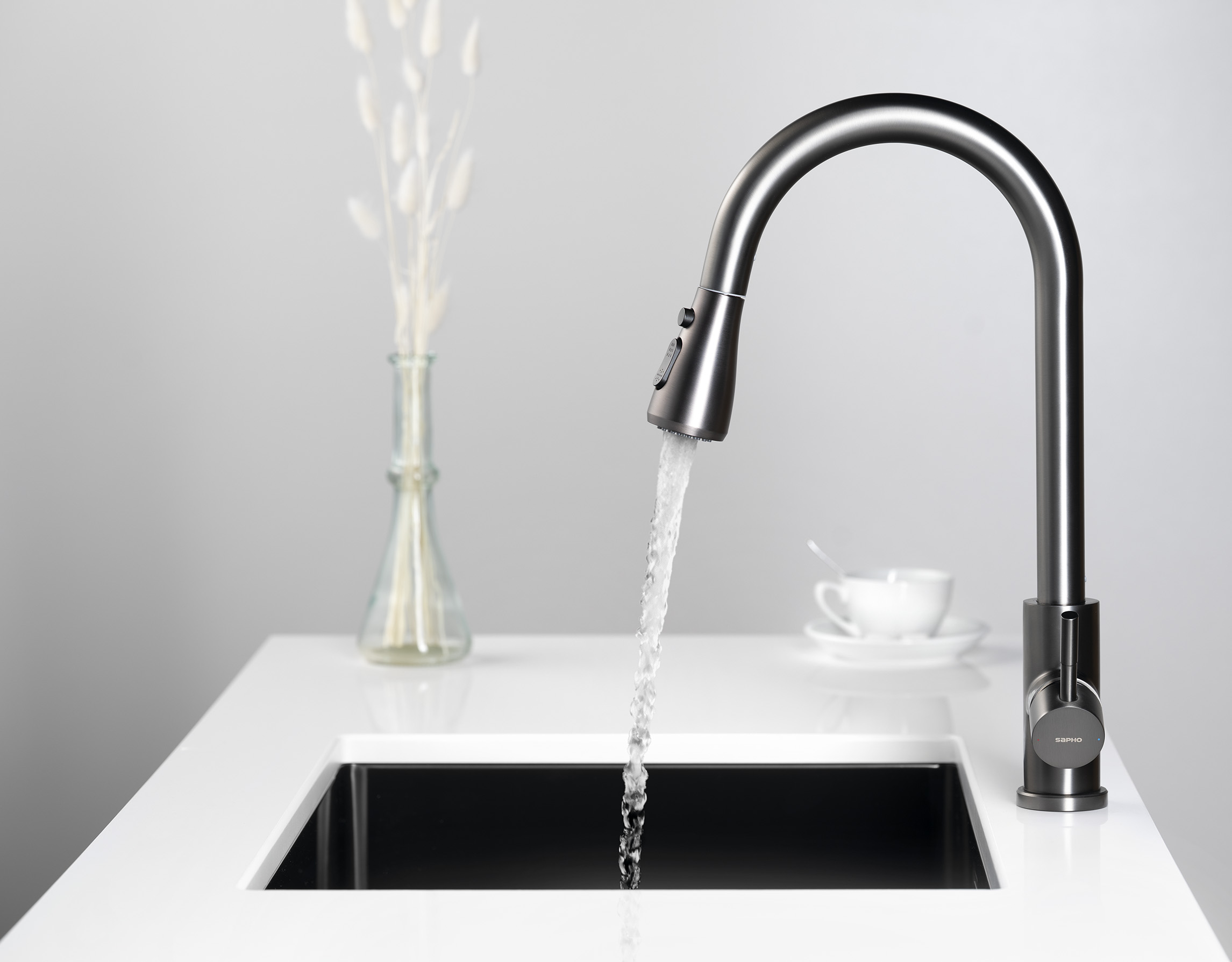 HEBE stojánková dřezová baterie se sprškou, černá mat HT430B
