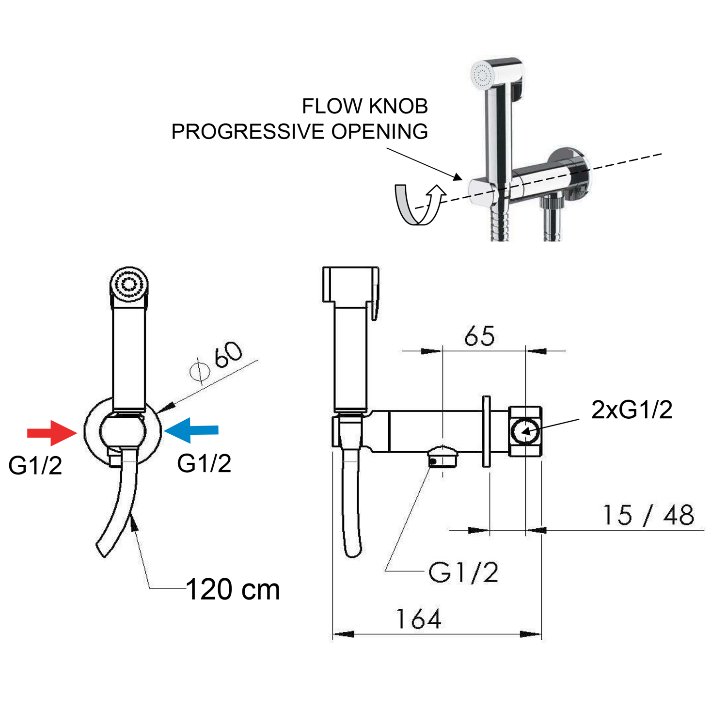 RHAPSODY podomítková bidetová baterie se Stop sprškou, kulatá, chrom 1209-07