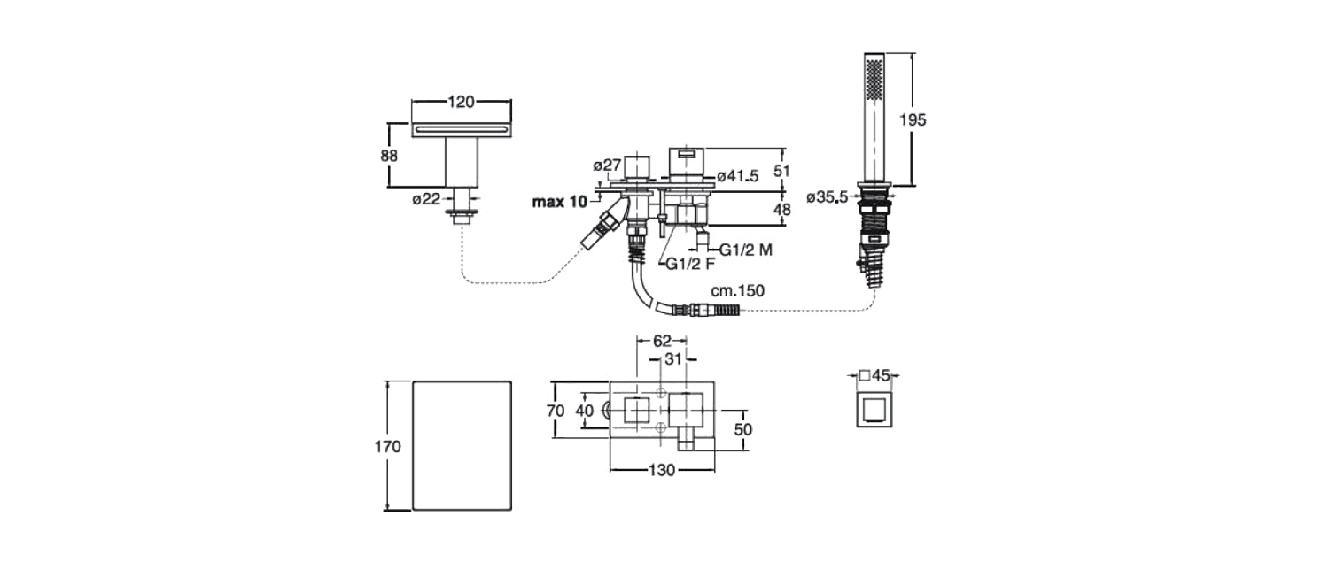 Sprchové kolínko mezi hlavici a hadici 1/2