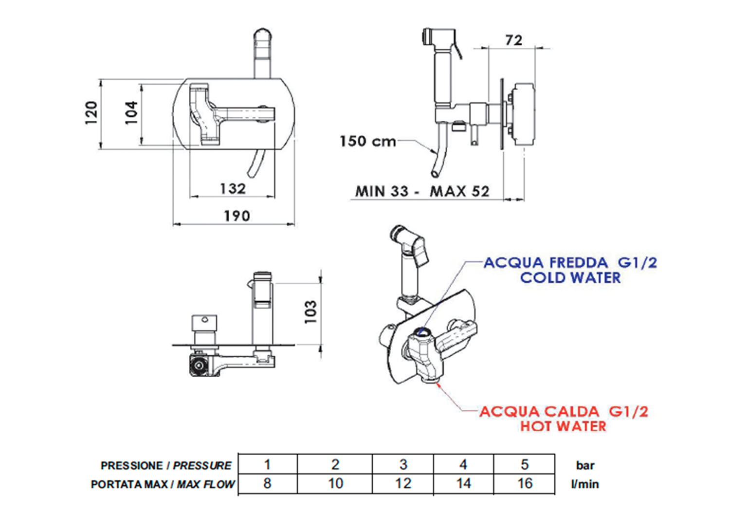 SPECTRE podomítková bidetová baterie se Stop sprškou, hranatá, chrom 1102-07