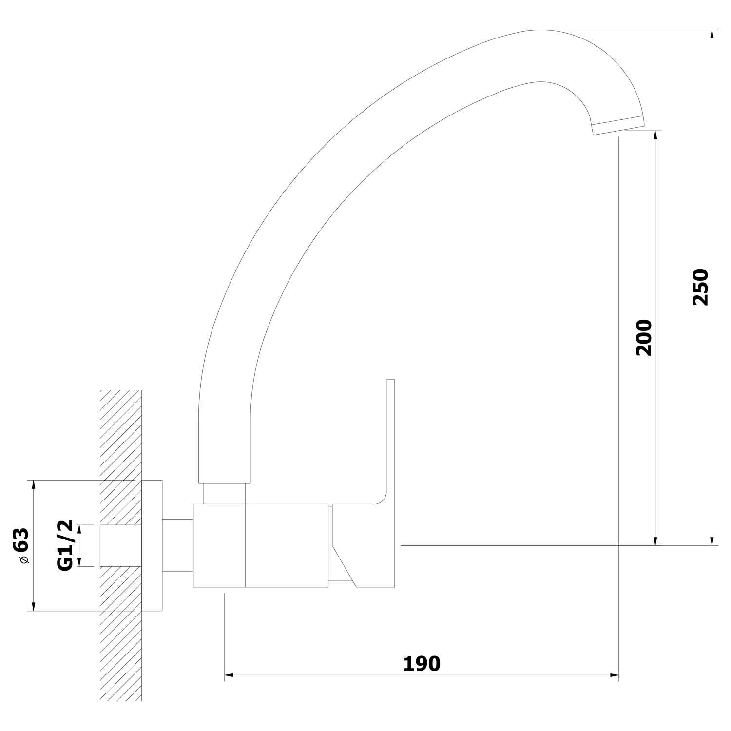 Universální výtokové ramínko k baterii, 250mm, typ-J, chrom 15J250