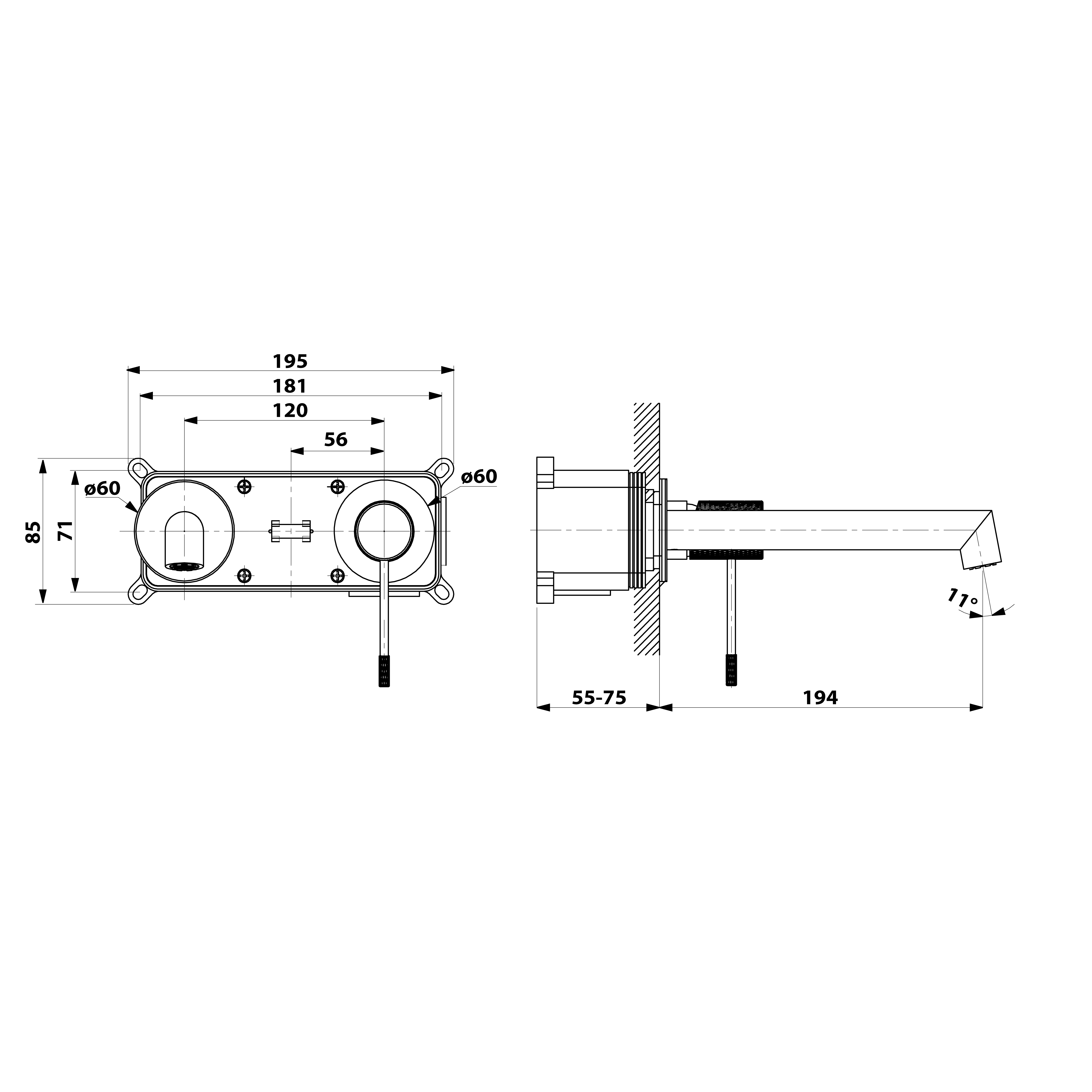 ICONIC podomítková dvouprvková umyvadlová baterie, černá mat AF008B