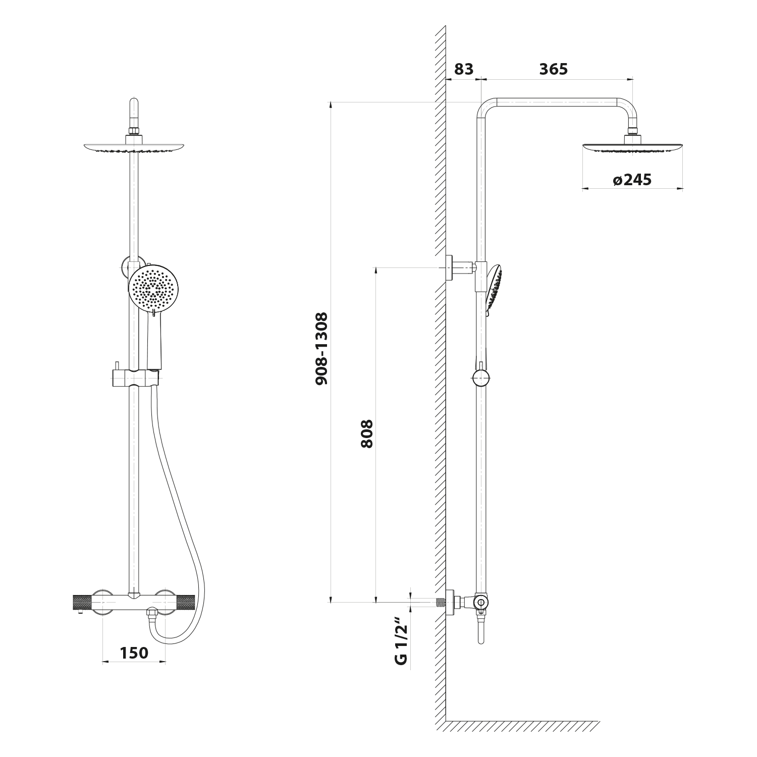 DIMY sprchový sloup s termostatickou baterií, černá mat DM322BL