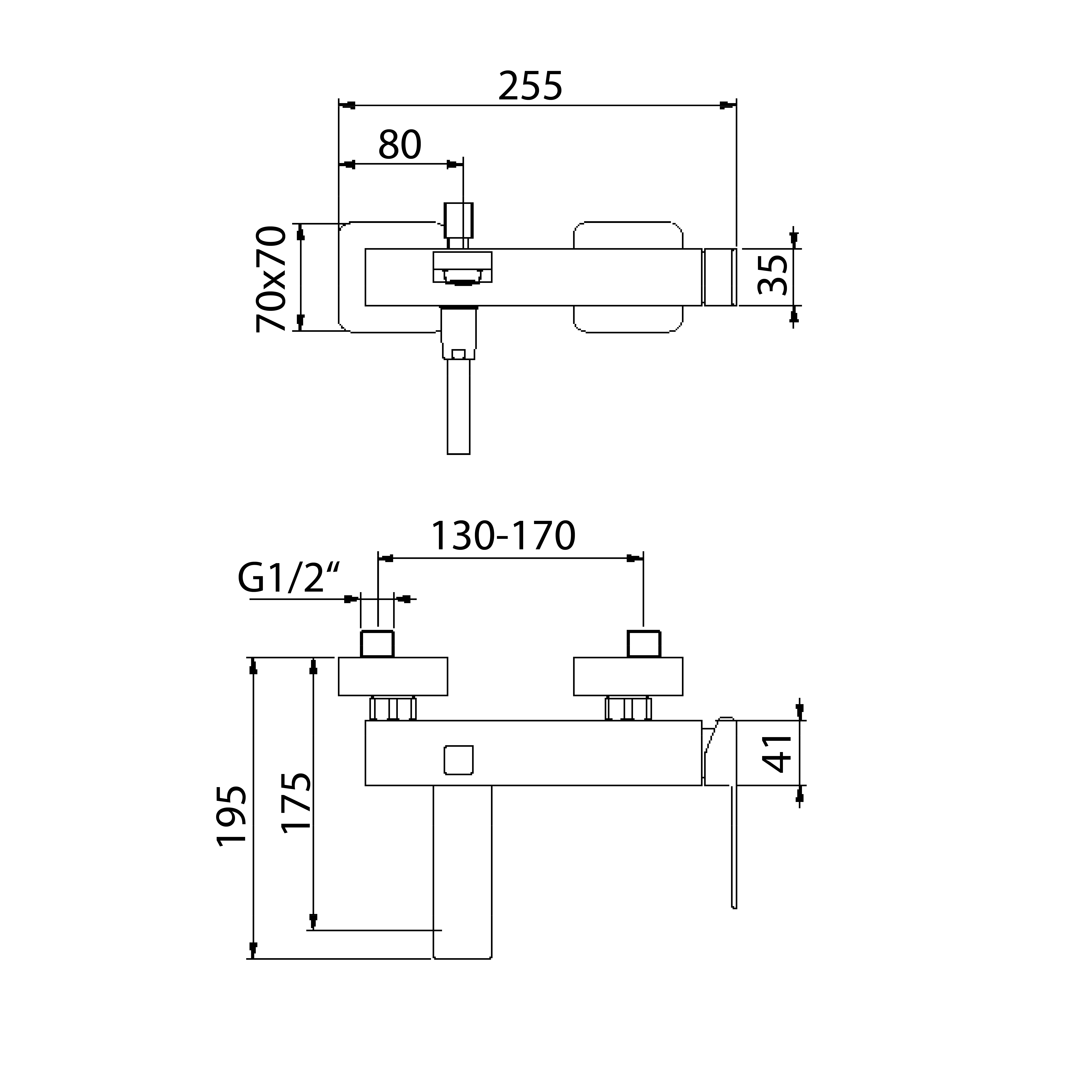Sprchová souprava hranatá, posuvný držák 680mm, černá mat SC815B