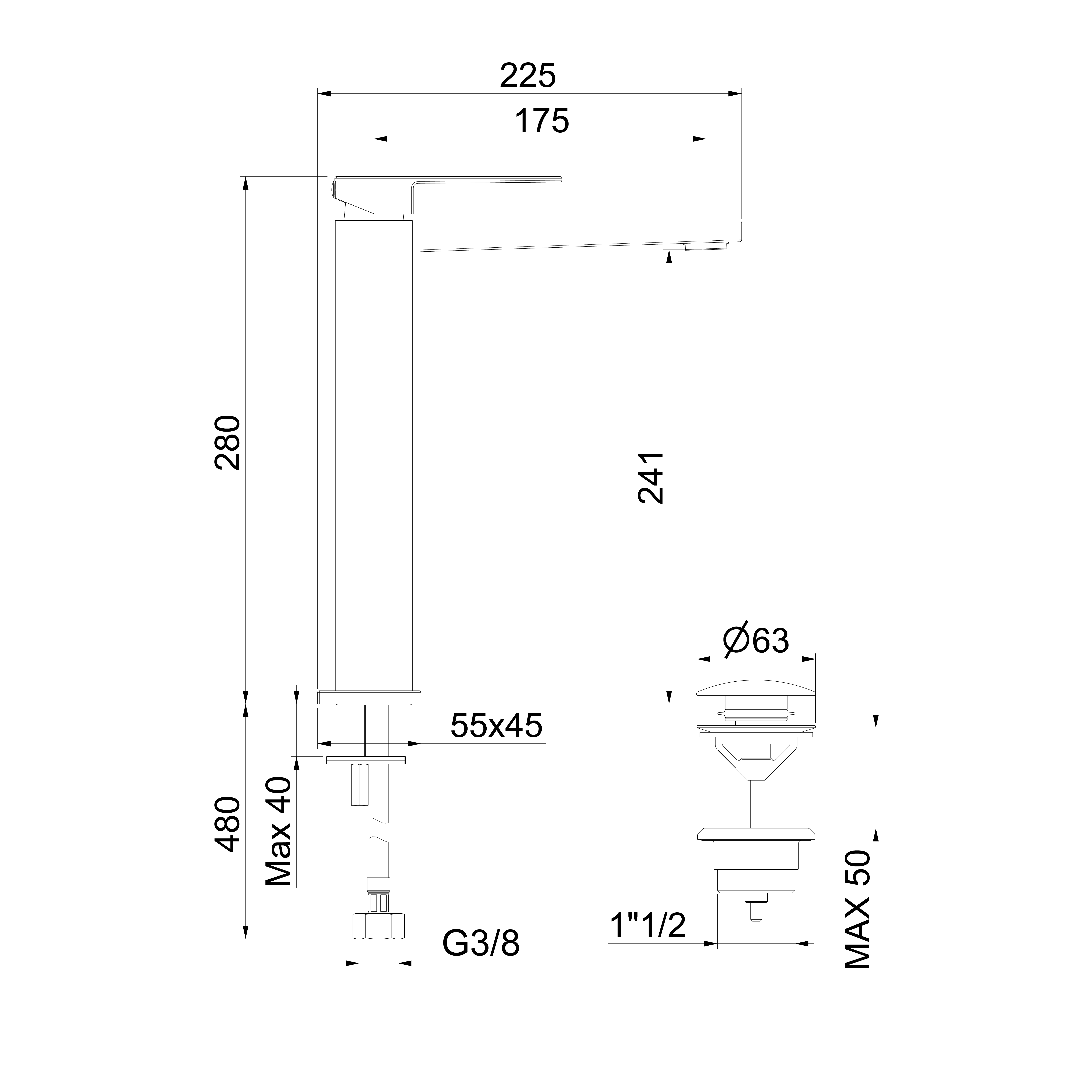 Umyvadlová výpust 5/4“, click-clack, velká zátka, 10-55mm, chrom CV1002