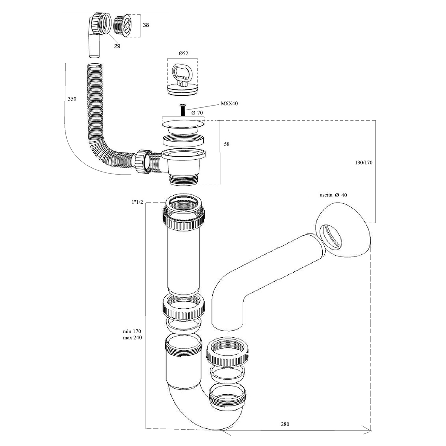 • Výpust a sifon s přepadovou soupravou jsou součástí balení.