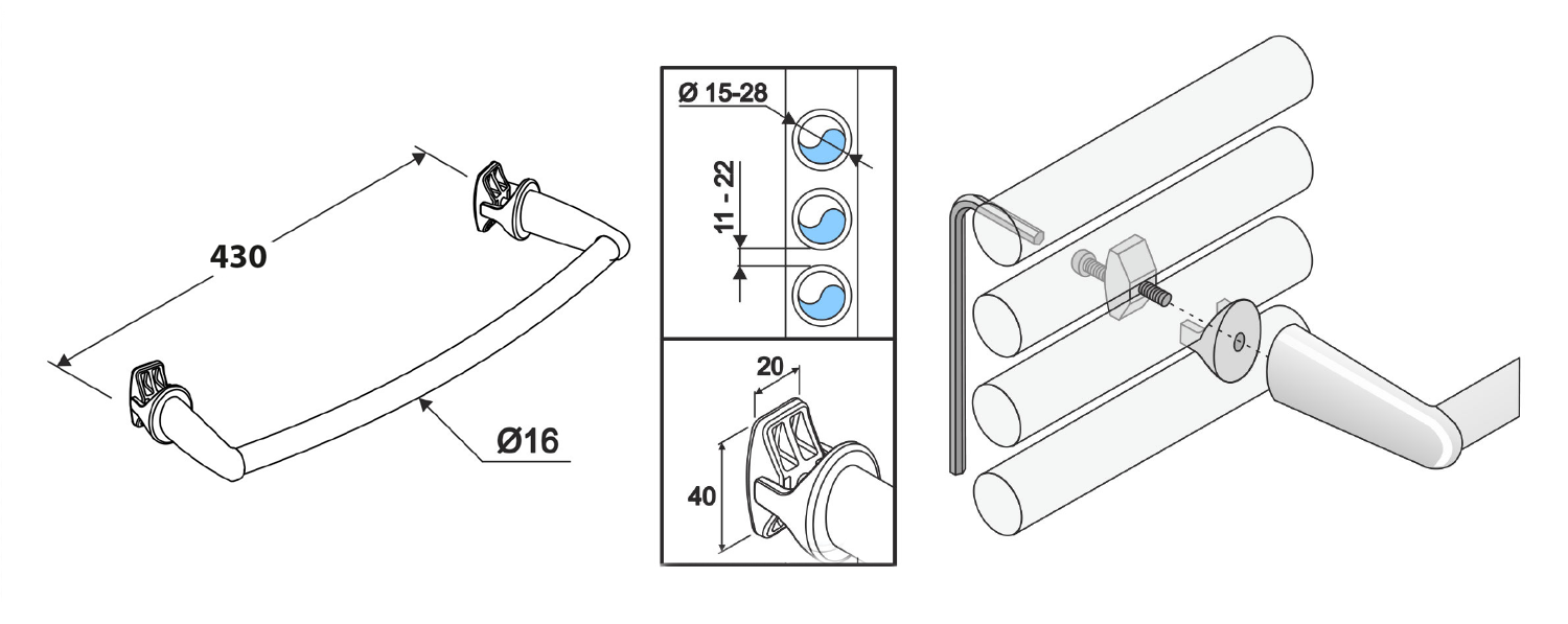 Vhodný pro instalaci na oblá otopná tělesa od šířky 60 cm. Instalace pomocí přiloženého INBUS klíče.