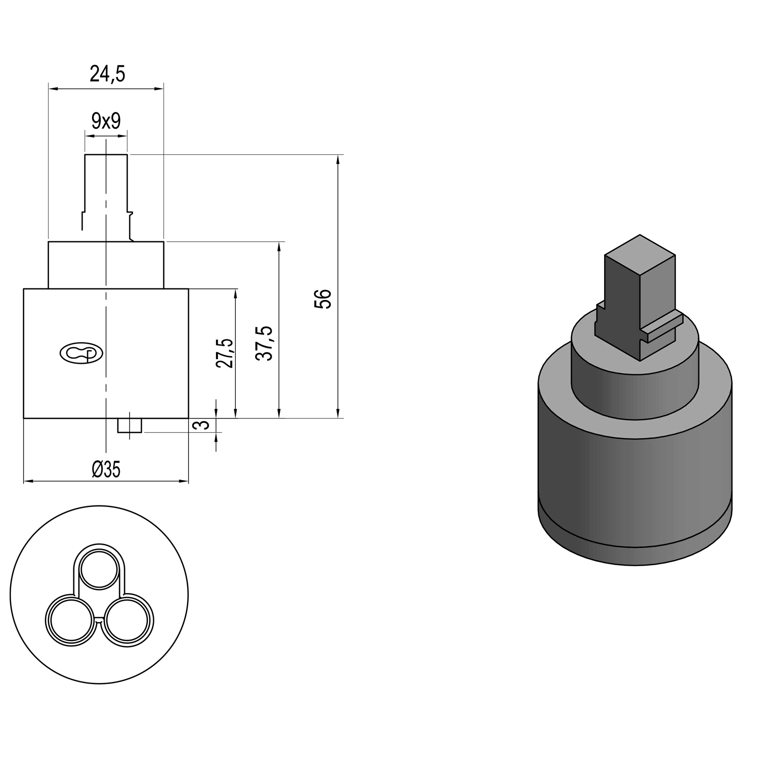 KEROX ECO směšovací kartuše 35mm, nízká 2121B2