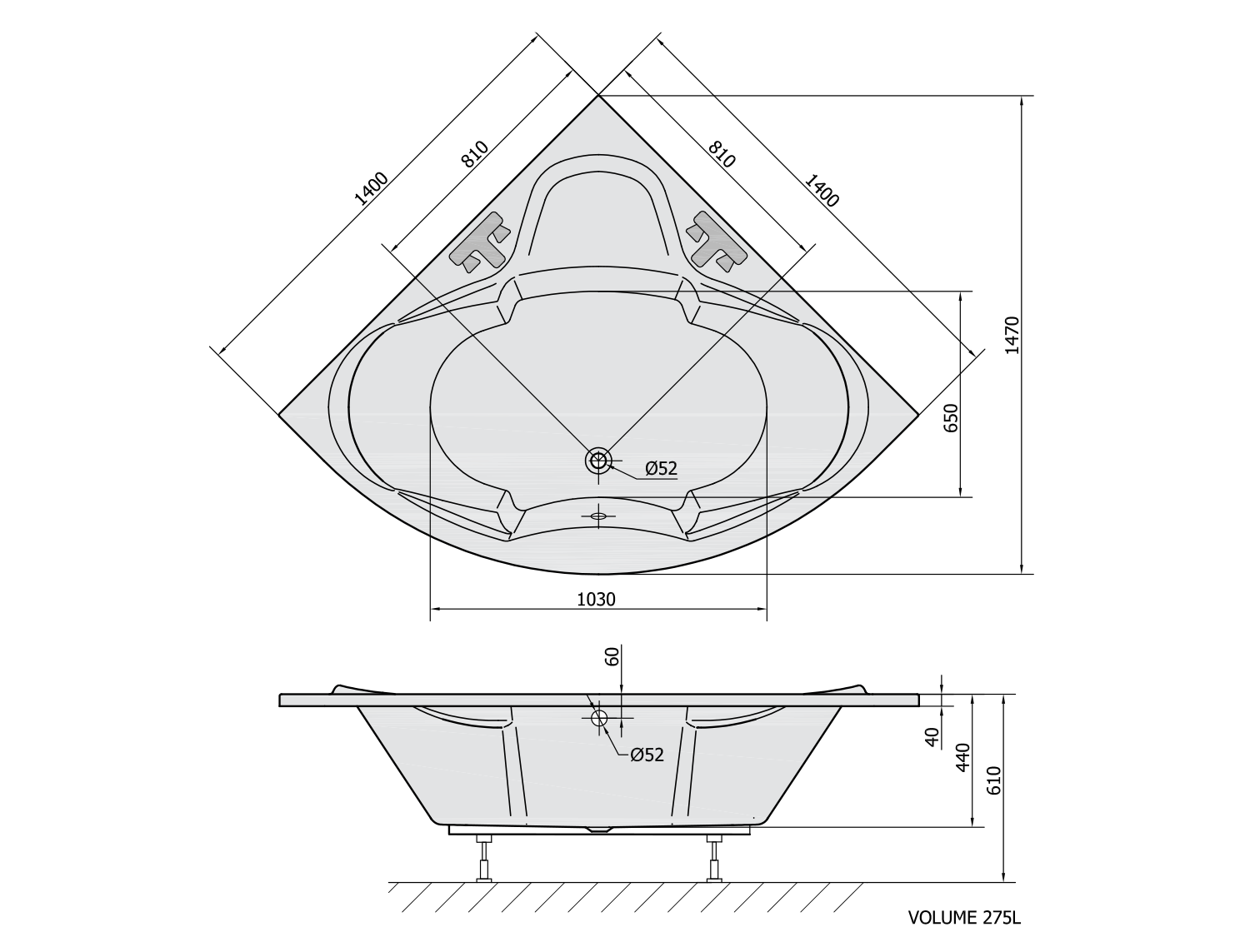 Nosná konstrukce pro rohovou vanu 140x140cm FR141141