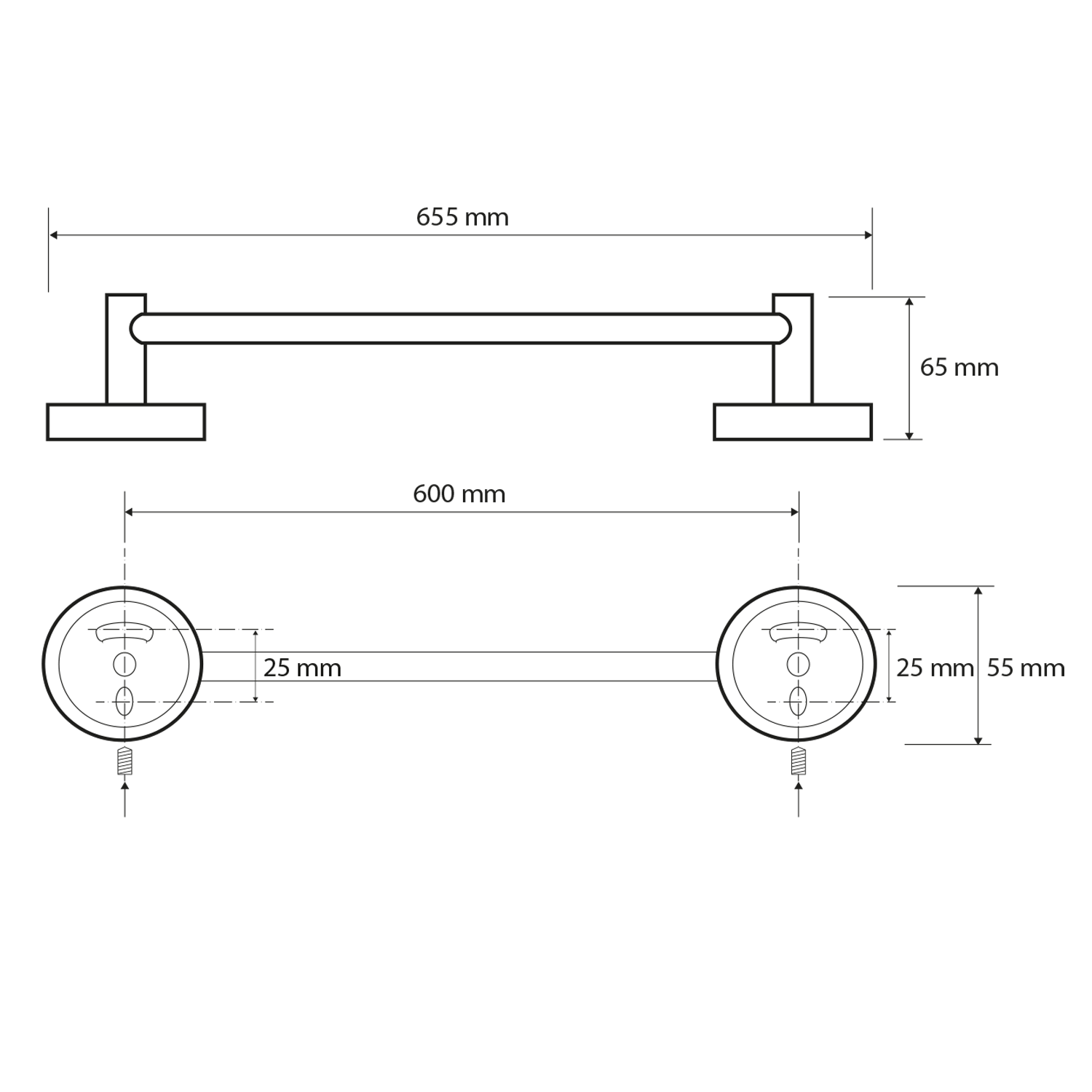 X-ROUND držák ručníků 600mm, chrom XR404