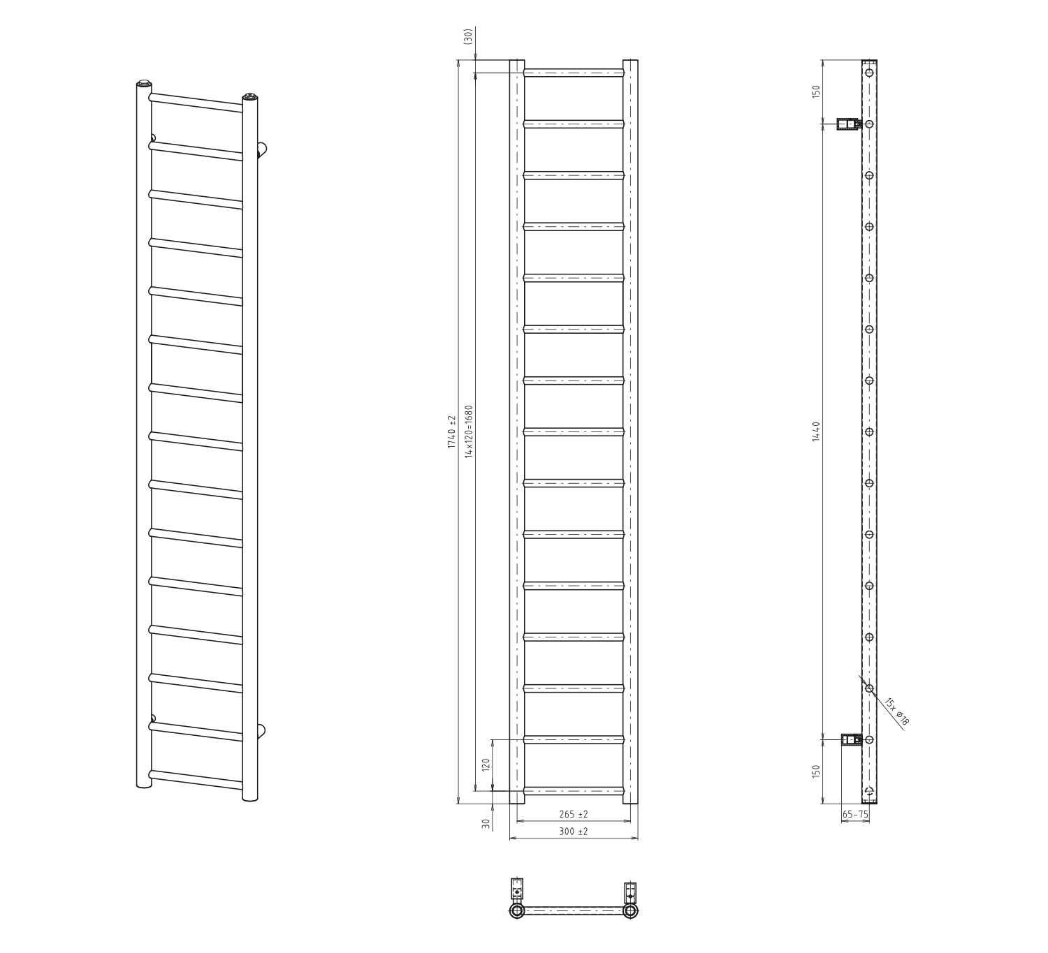 MOA topná tyč s termostatem, 300 W, chrom MOA-C-300