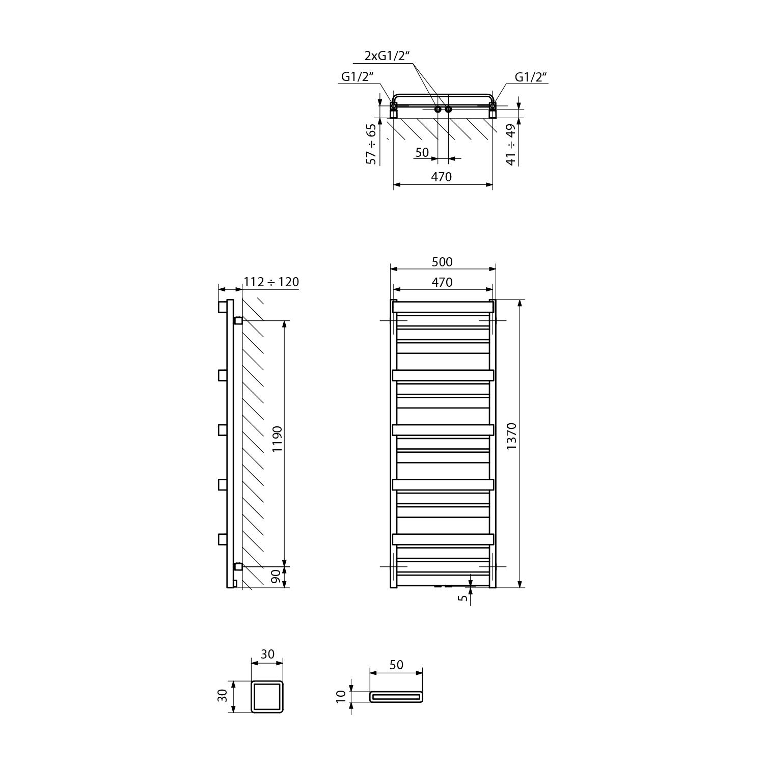 WICHER připojovací sada termostatická pro středové připojení 50mm, provedení bílá 600.311.4