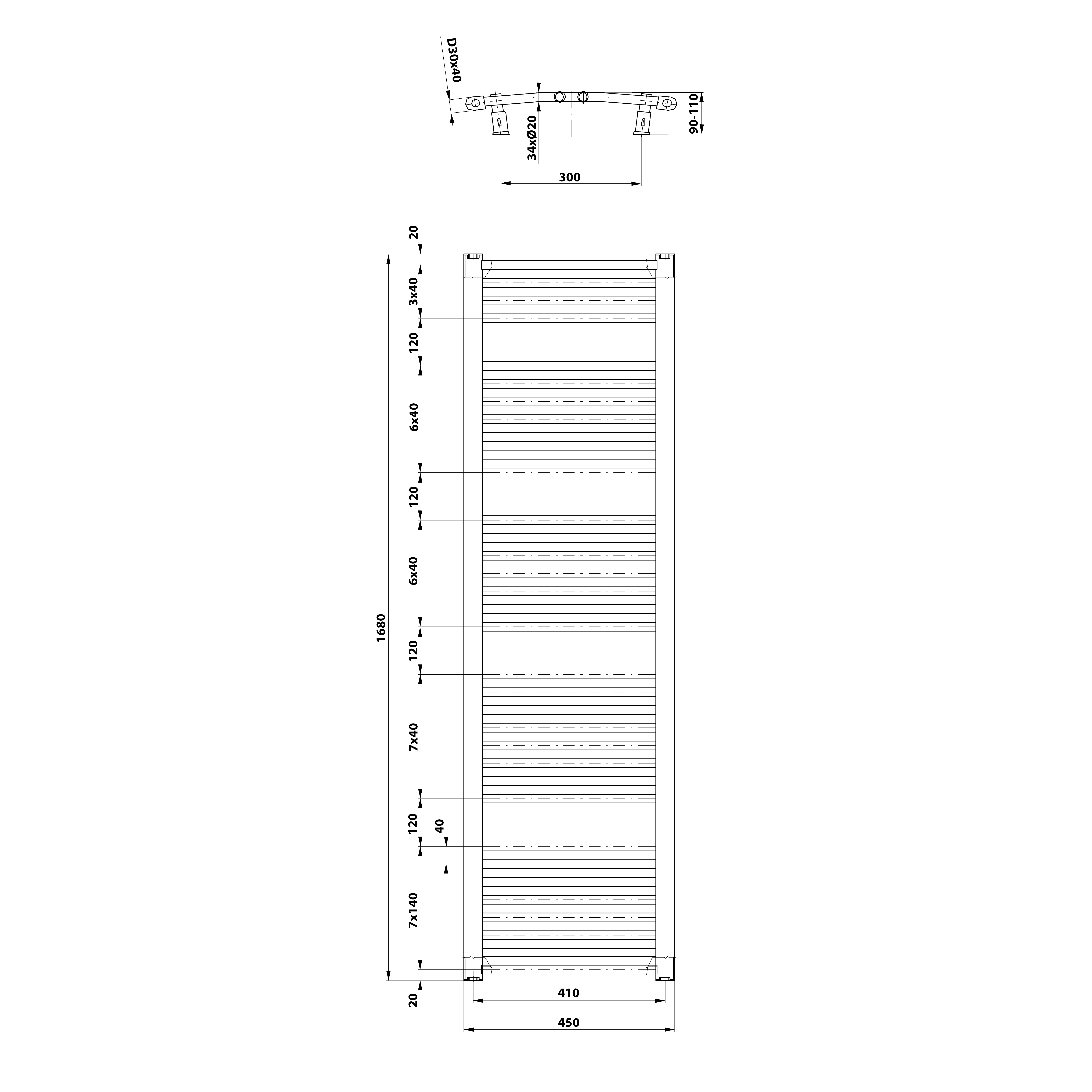 Dvojháček pro rovná a oblá otopná tělesa, chrom 1801-23