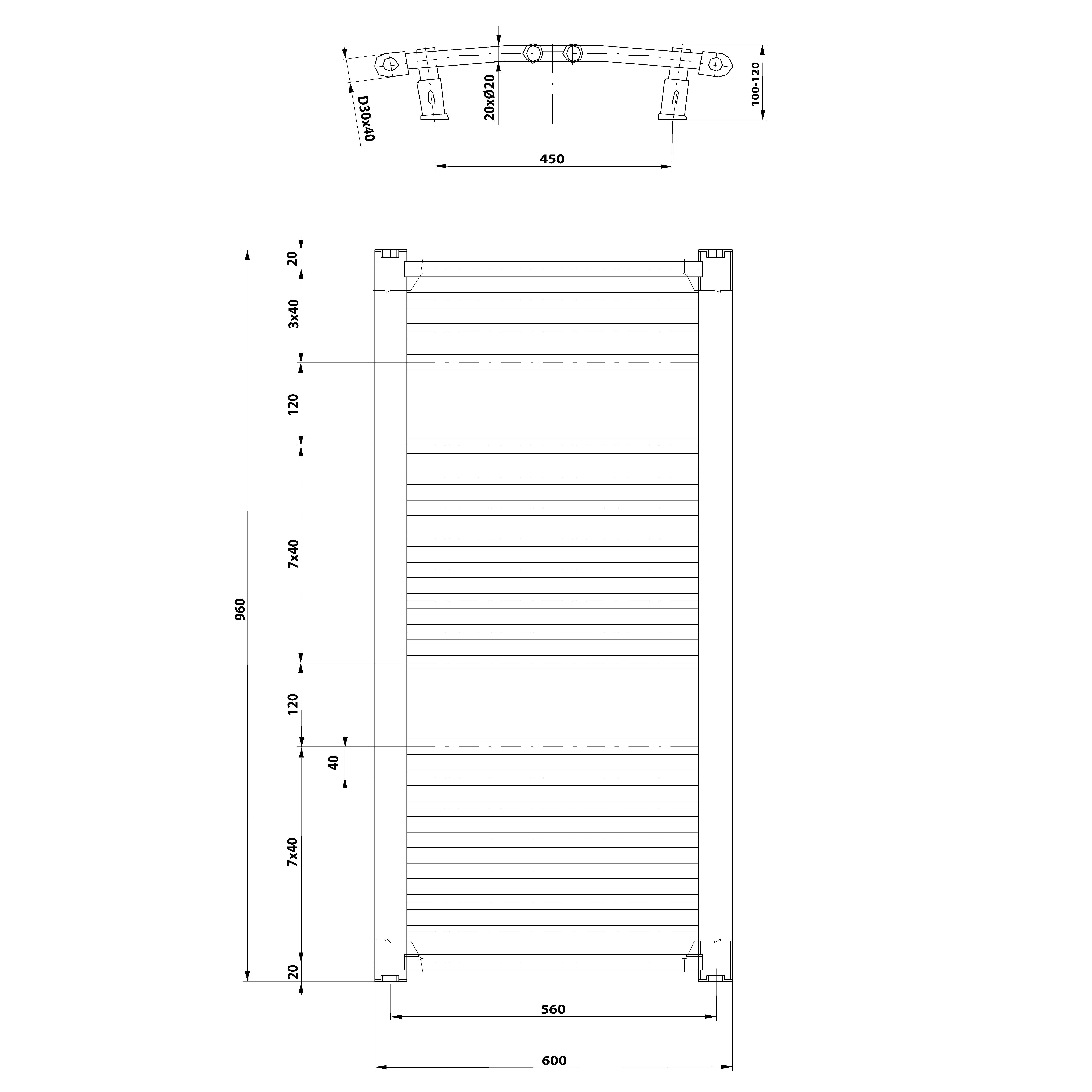 Dvojháček pro rovná a oblá otopná tělesa, chrom 1801-23