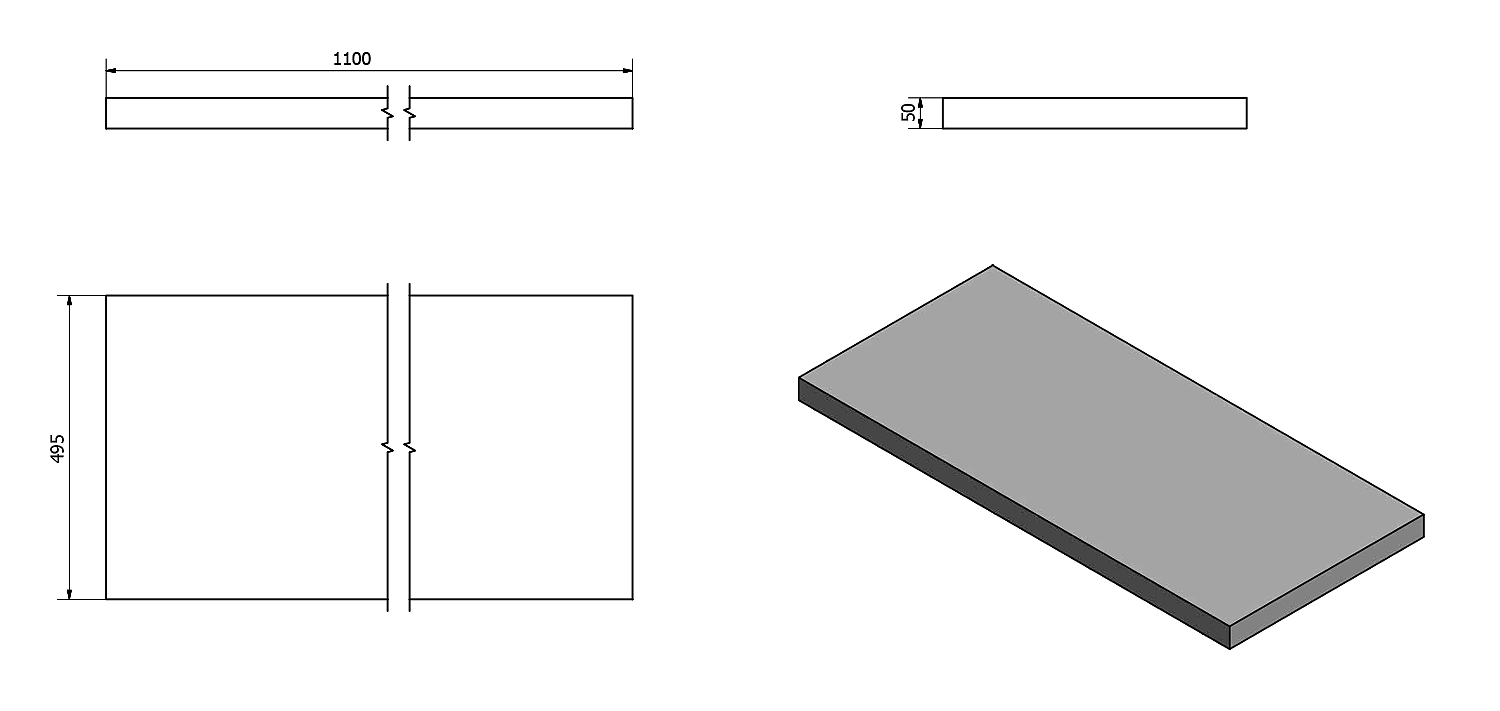 Podpěrná konzole 490x150x20mm, lakovaná ocel, černá mat, 1 ks 30360
