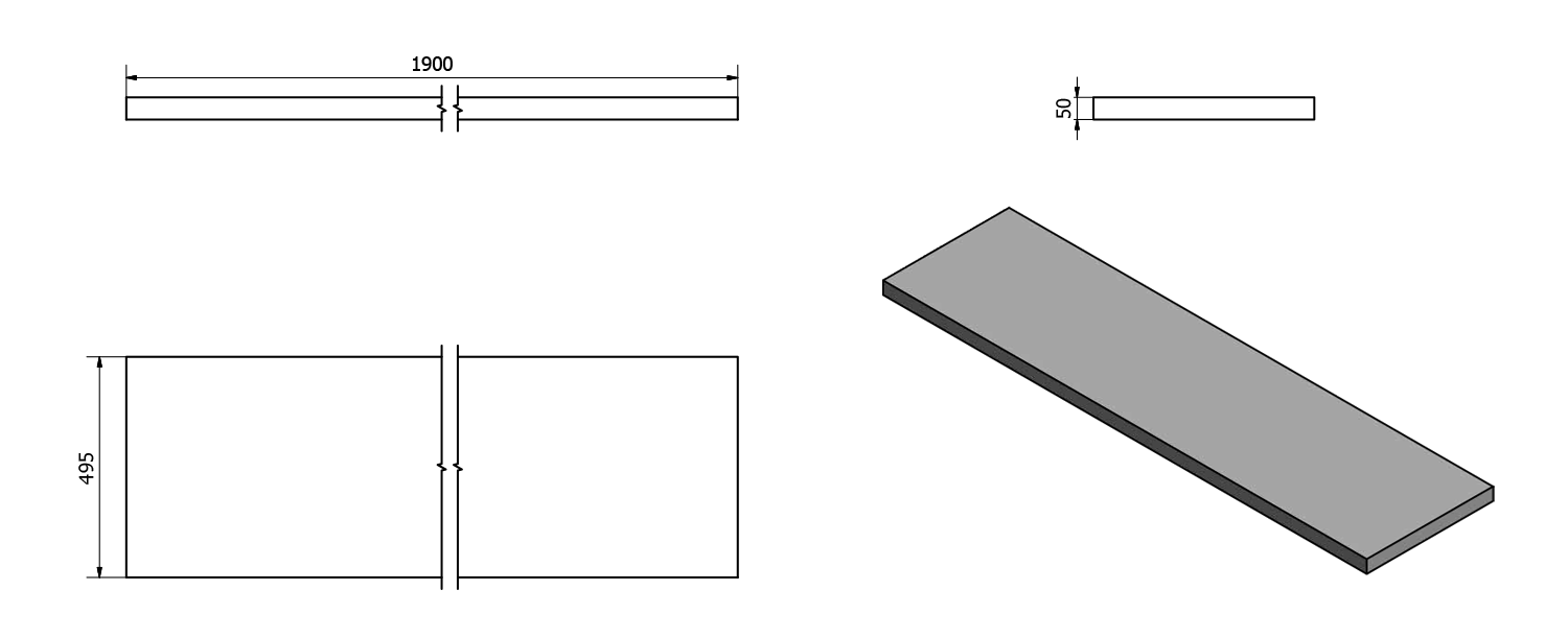Podpěrná konzole 490x150x20mm, lakovaná ocel, černá mat, 1 ks 30360