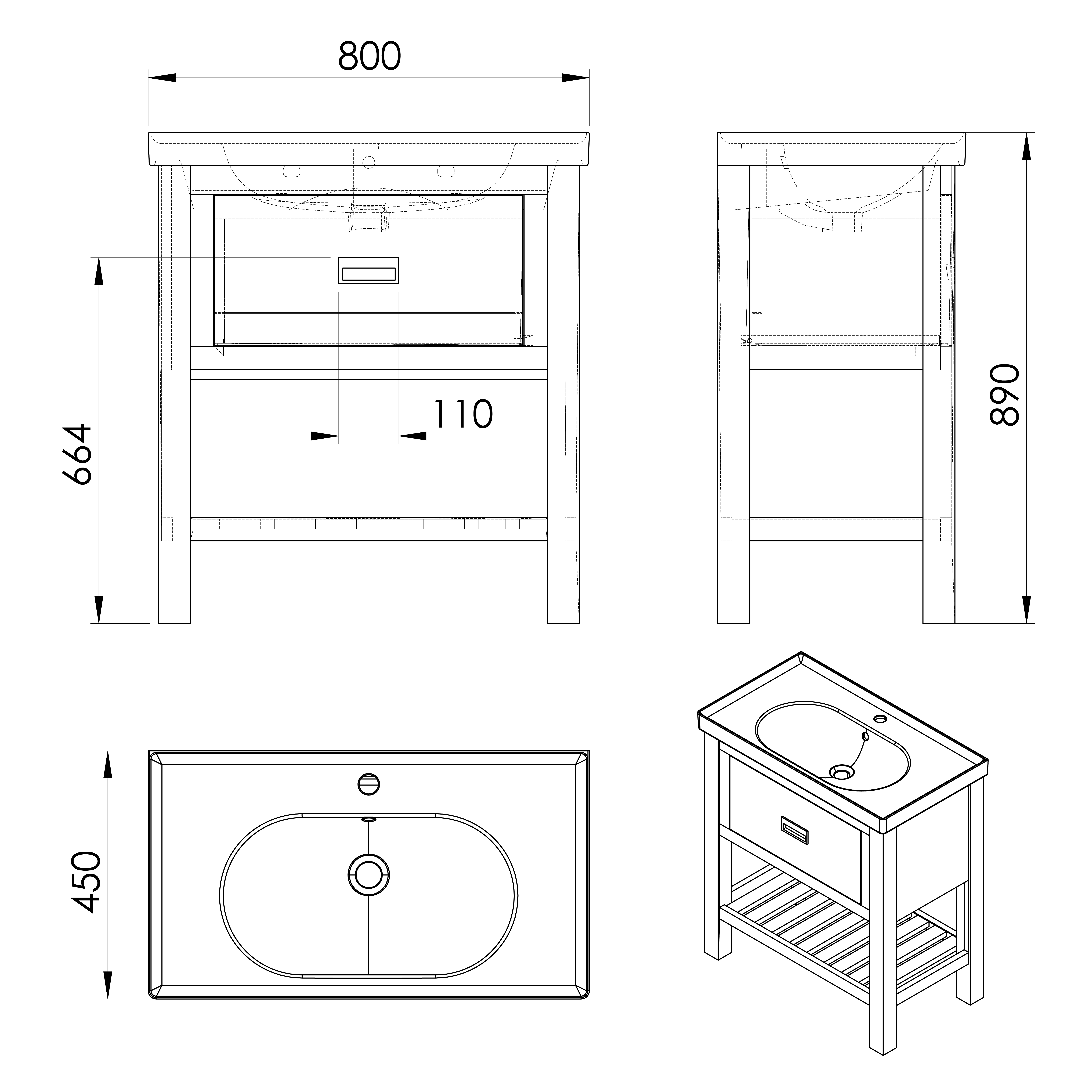 BRAND keramické umyvadlo 80x45cm, bílá TU0422