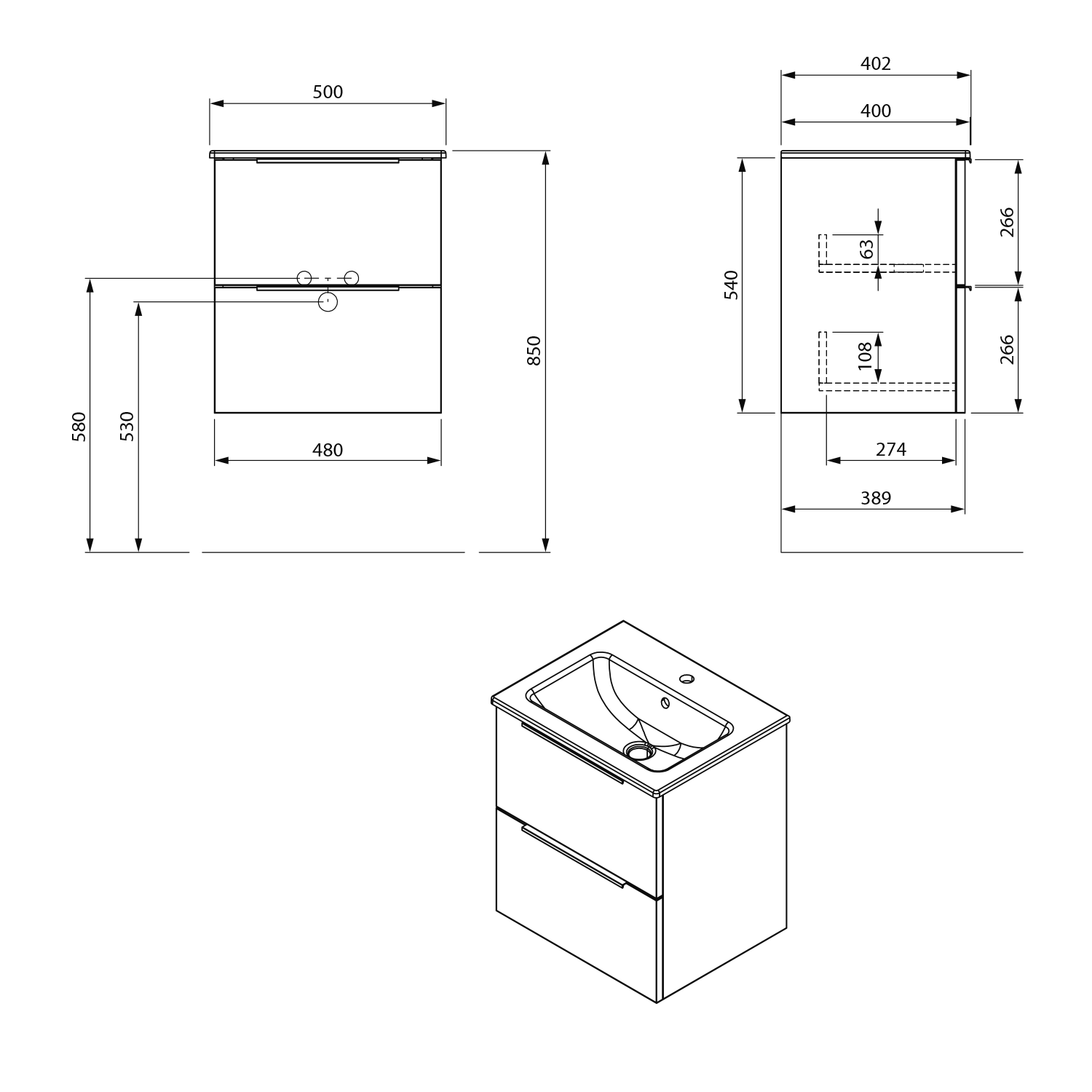 PRACTICO keramické umyvadlo nábytkové 50x40cm, bílá 44050
