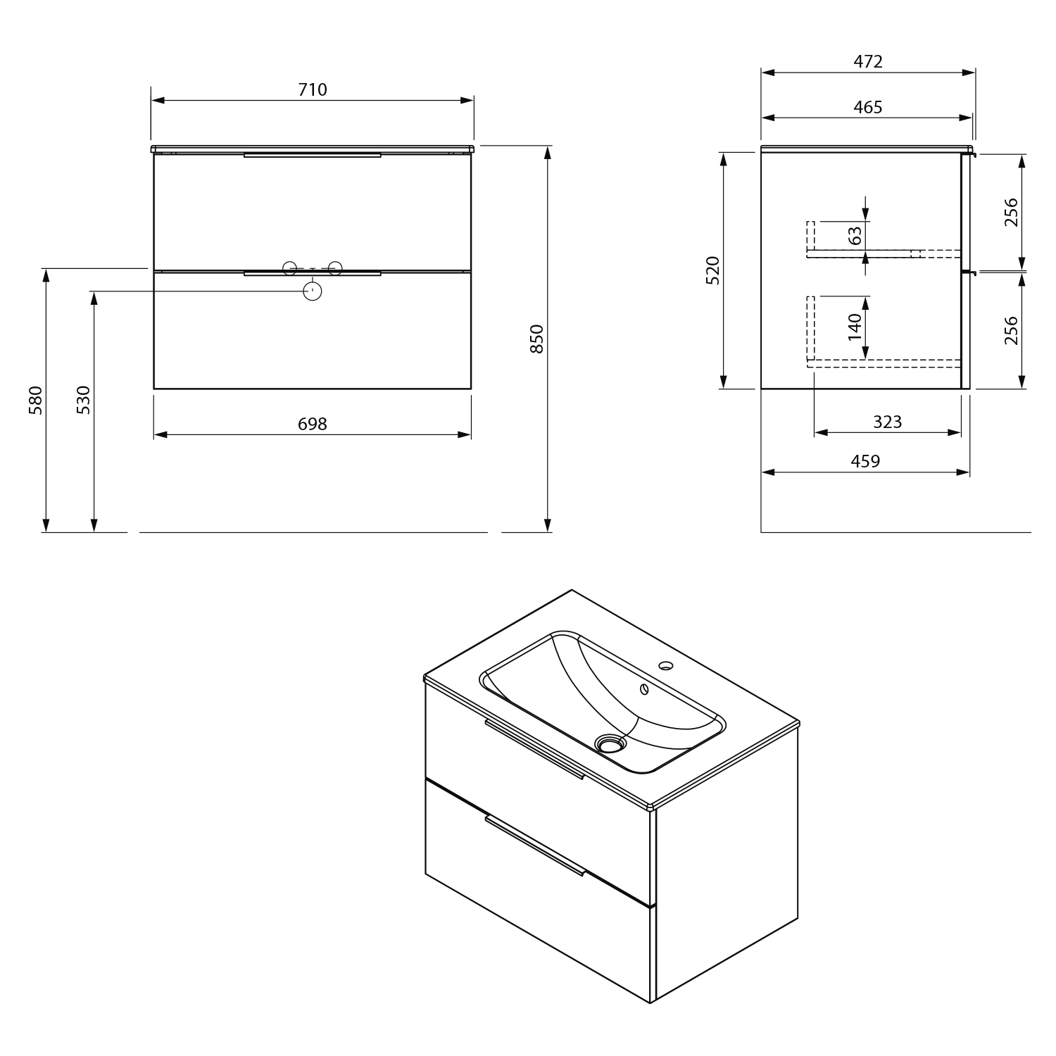 SLIM keramické umyvadlo, nábytkové, 70x46,5cm, bílá 1601-70