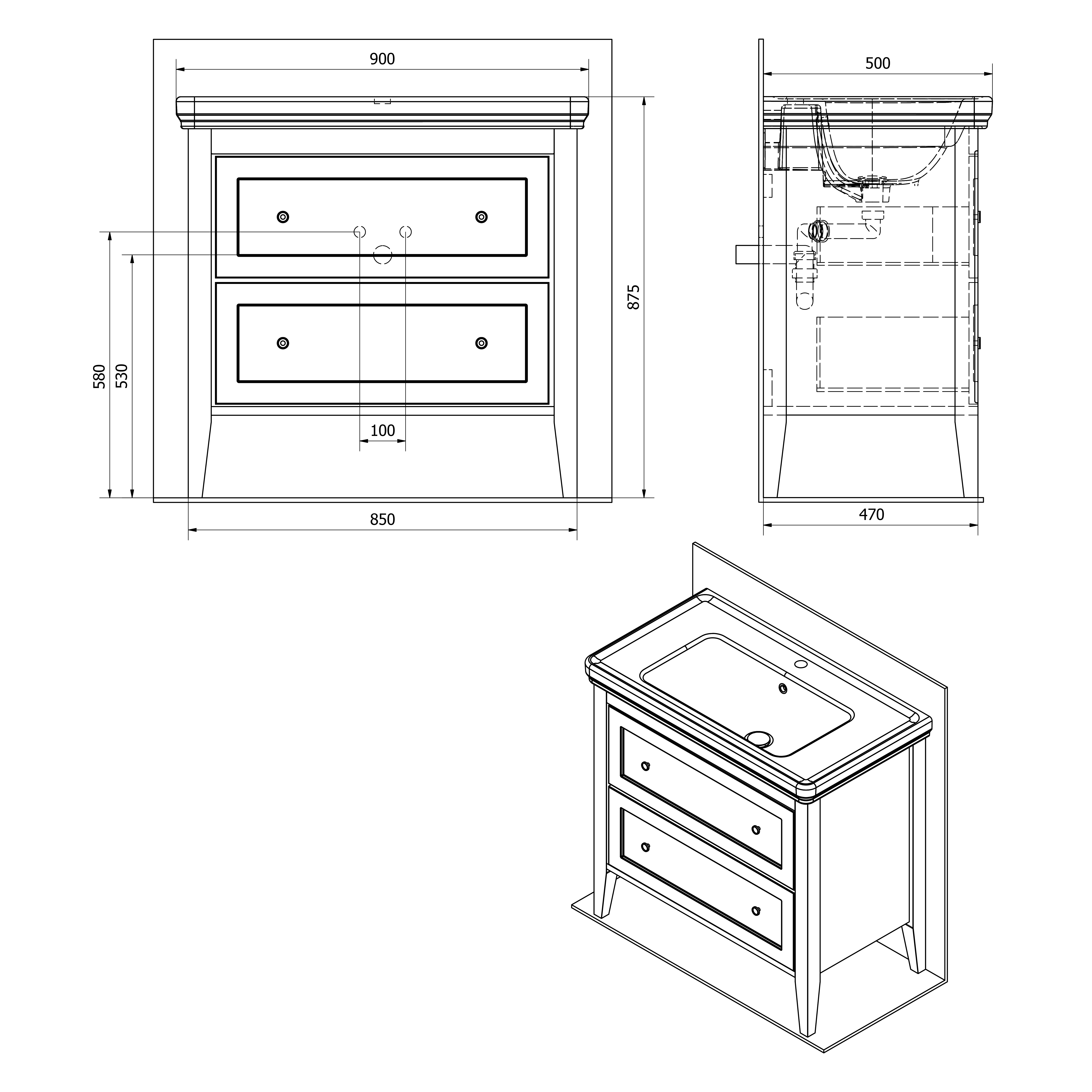 CLASSIC keramické umyvadlo 90x50cm, bílá ExtraGlaze 8788111