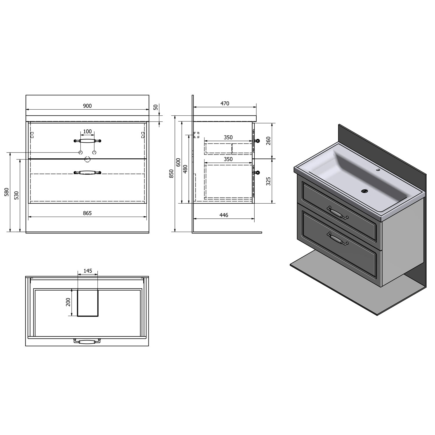 SAVA 90 keramické umyvadlo nábytkové 90x46cm, bílá 2090