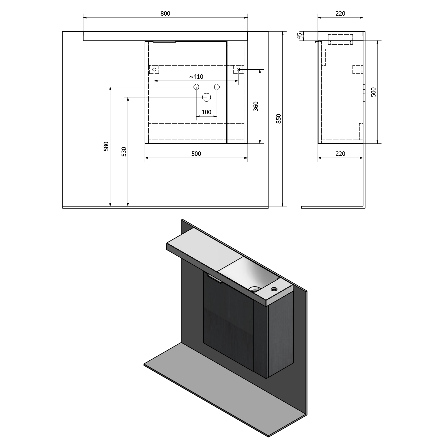 AGOS umývátko, litý mramor, 80x22cm, levé/pravé, bílá AS080