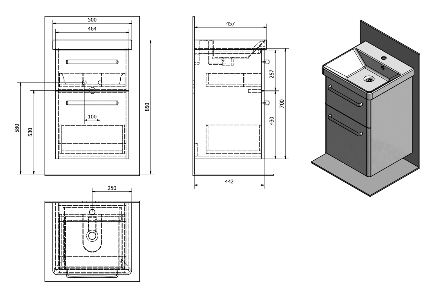 • Standardně dodáváno s úchytkami CT320, rozteč uchycení 320 mm.