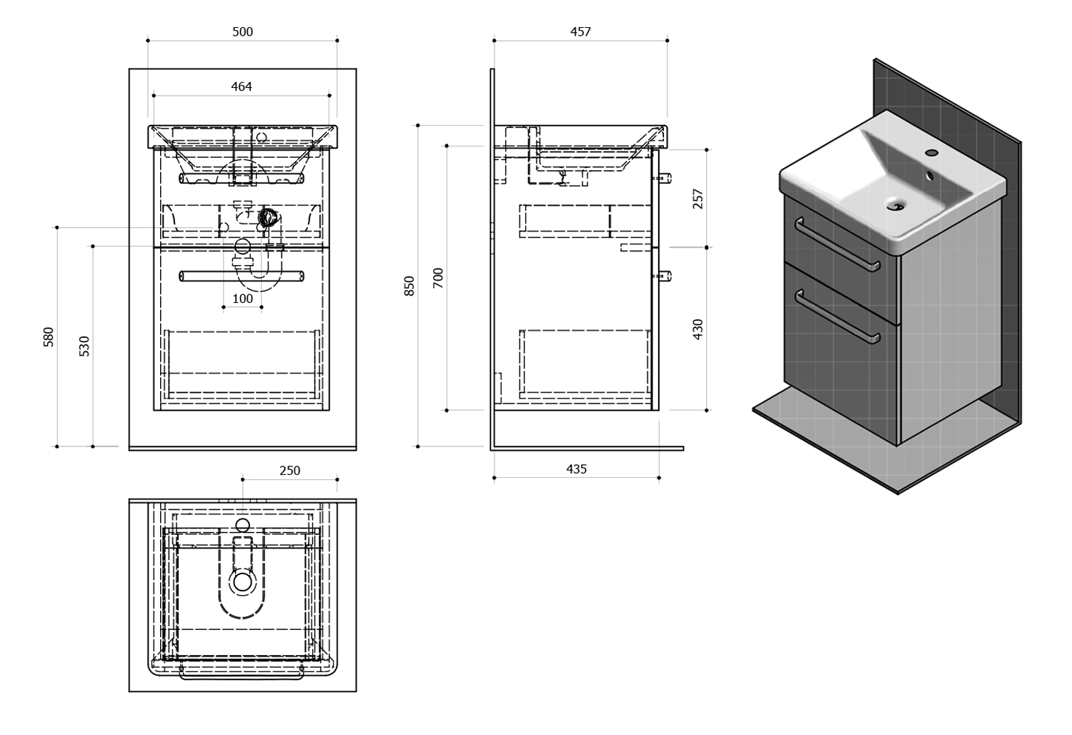 • Standardně dodáváno s úchytkami CT320, rozteč uchycení 320 mm.