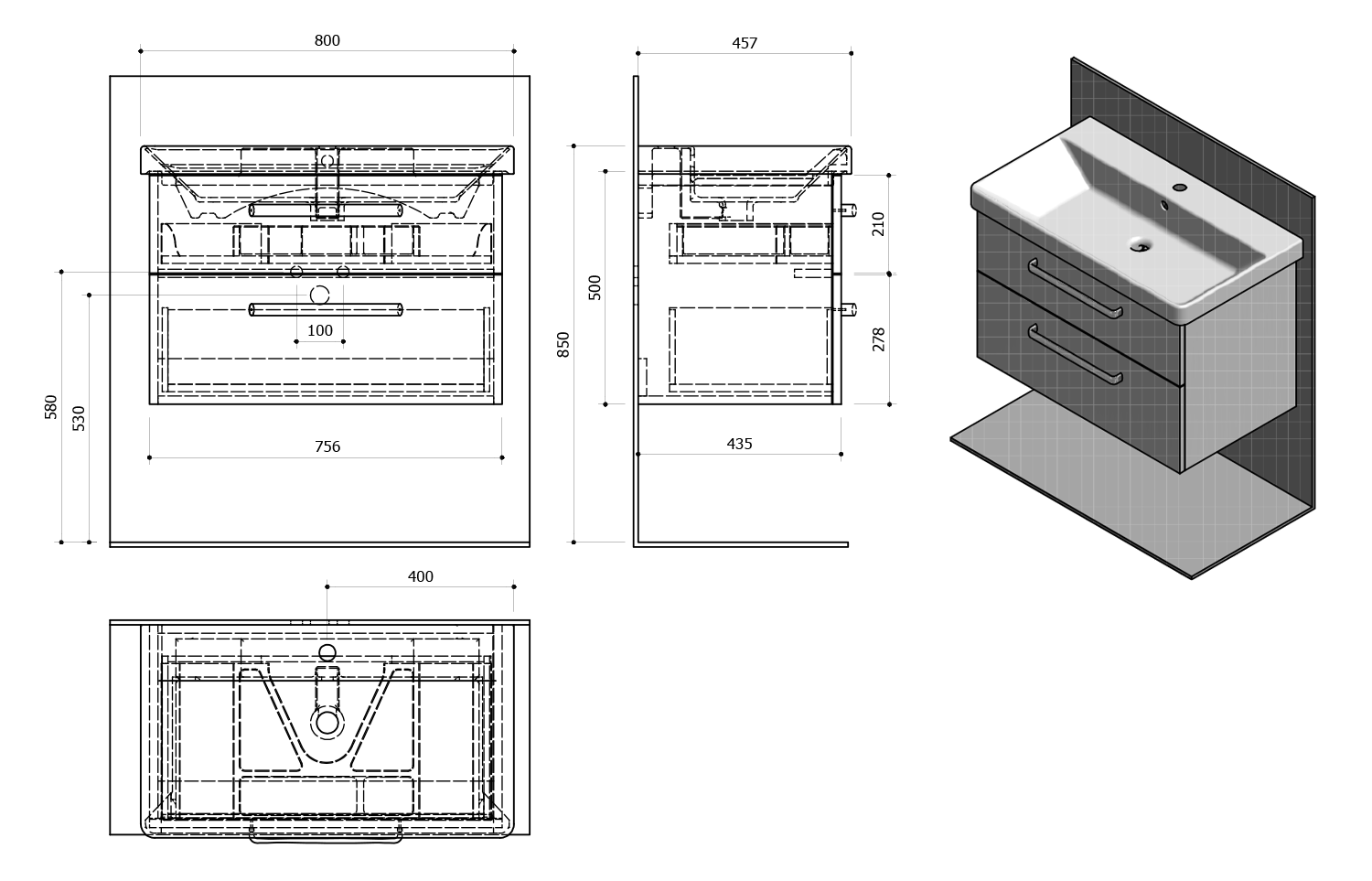 • Standardně dodáváno s úchytkami CT320, rozteč uchycení 320 mm