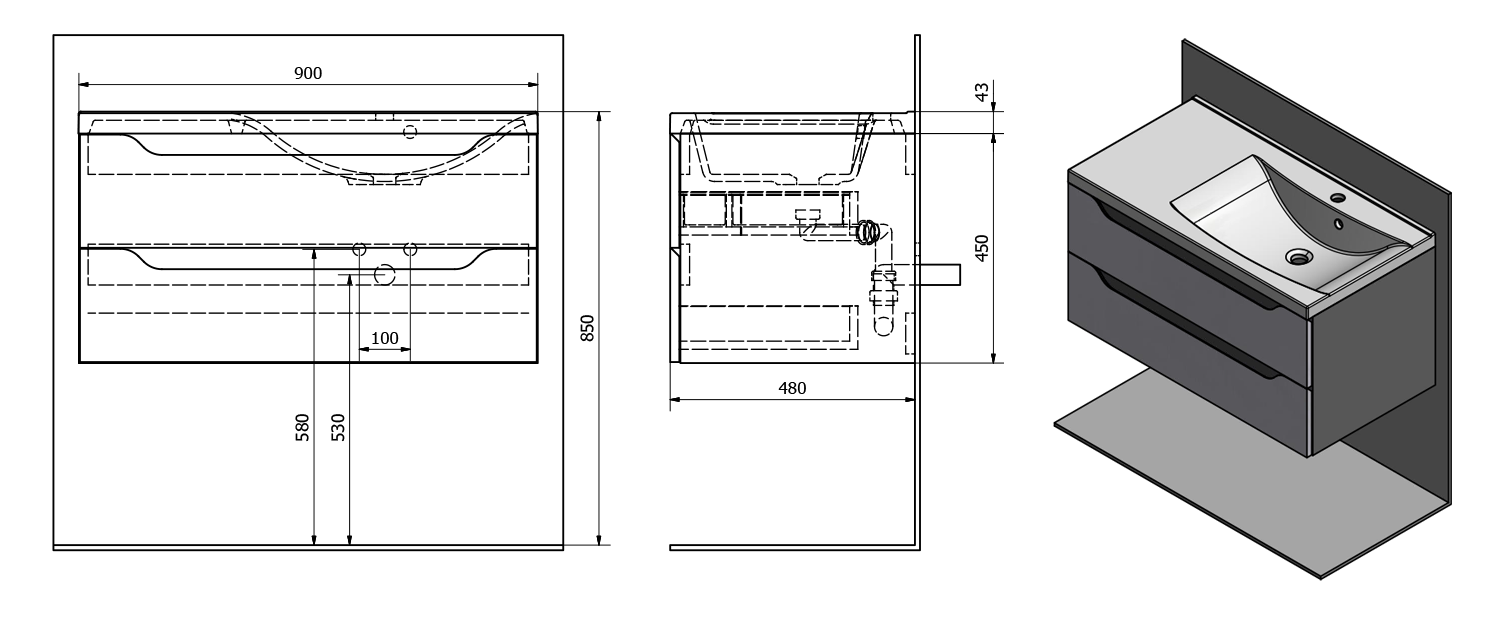 LUCIOLA umyvadlo, litý mramor, 90x48cm, pravé, bílá 50094