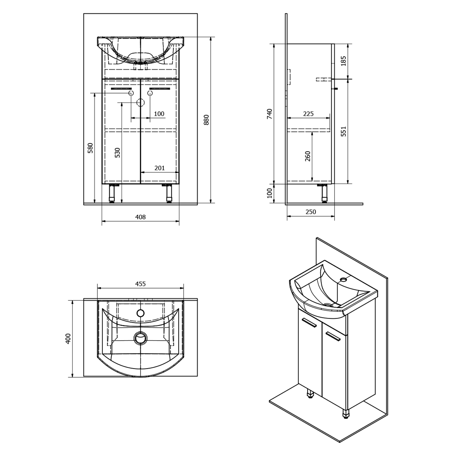 ZERO 45 keramické umyvadlo nábytkové 45,5x40cm, bílá 6045